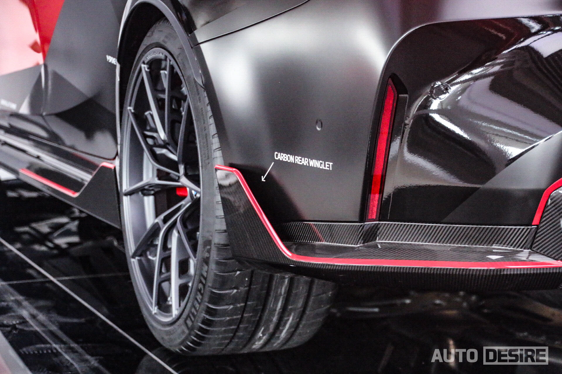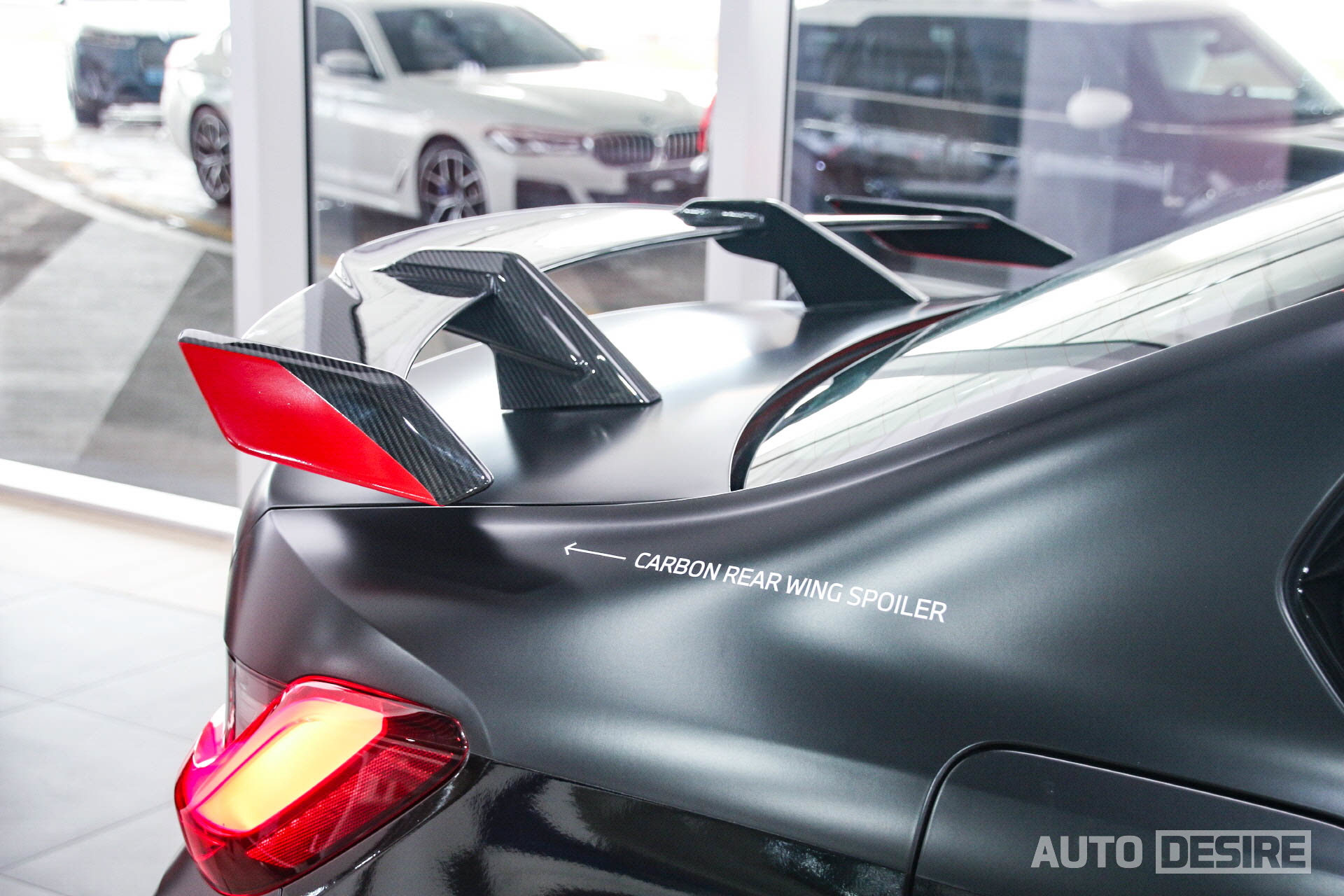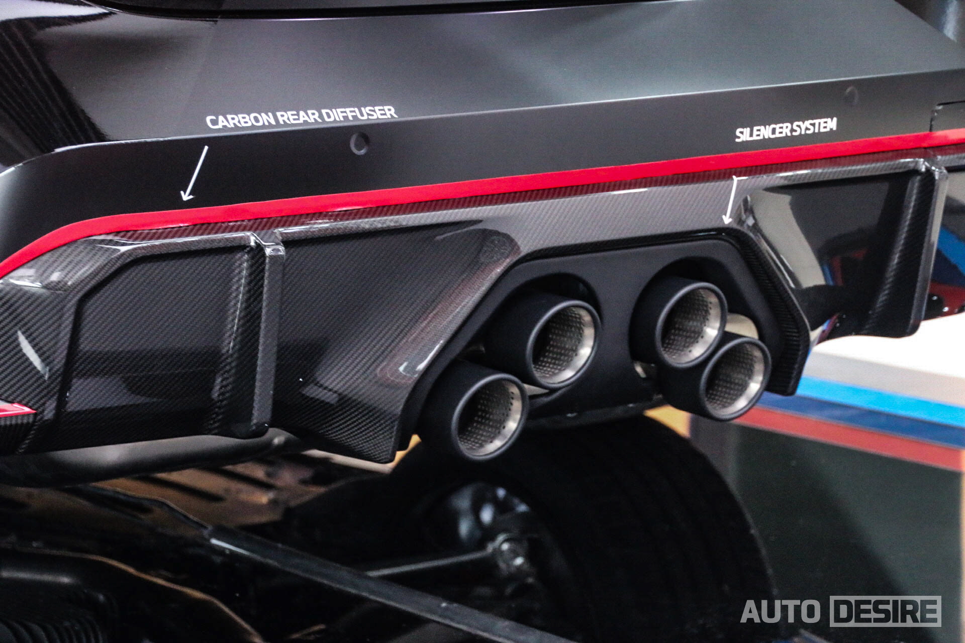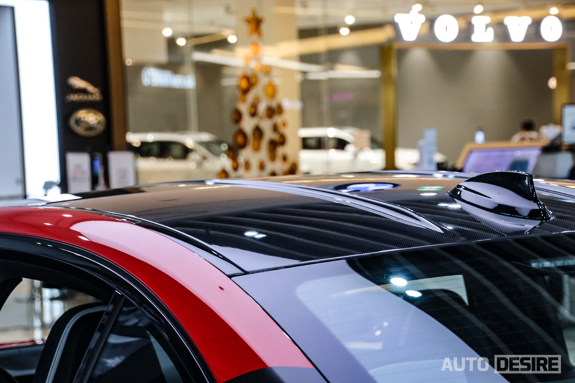 트렁크 리드 상단으로는 양끝 윙렛에 빨간 포인트를 적용한 카본 리어 윙 스포일러로 마무리. 그냥 눈으로 보기에도 좋지만, 다운포스를 만들어주면서 고속 주행 시 안정감을 높이는 데 도움을 줄 것이다.