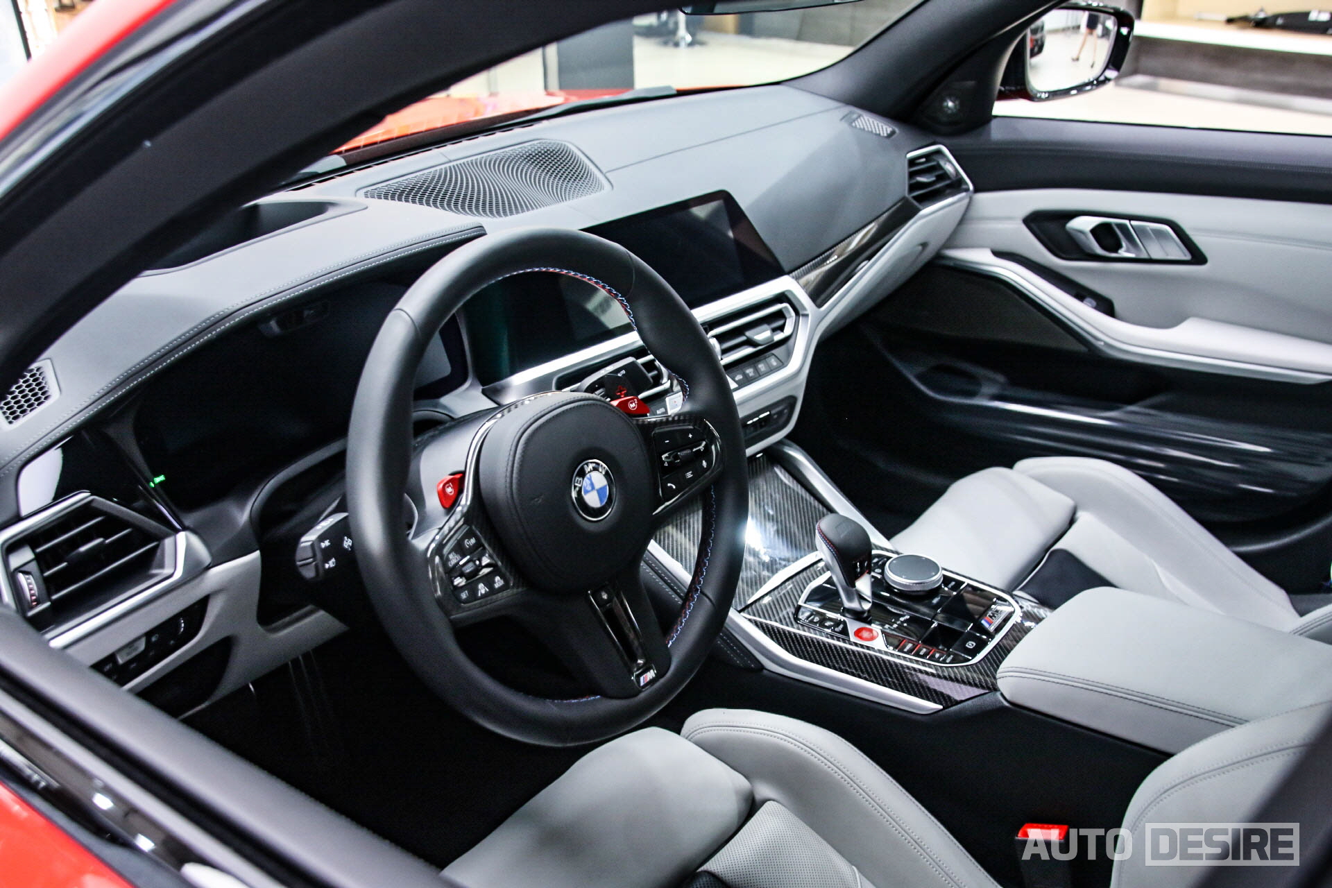 일단 외장 색상에서부터 레드 원톤이 아닌, 차체 하단부로 무광 블랙 투톤을 적용했다. 블랙&레드, 검빨 조합이라면 실패하기도 어렵고 무엇보다 강한 인상을 주기에 가장 탁월한 조합! M3 컴페티션의 존재감을 한층 더 강렬하게 만들어주고 있다.