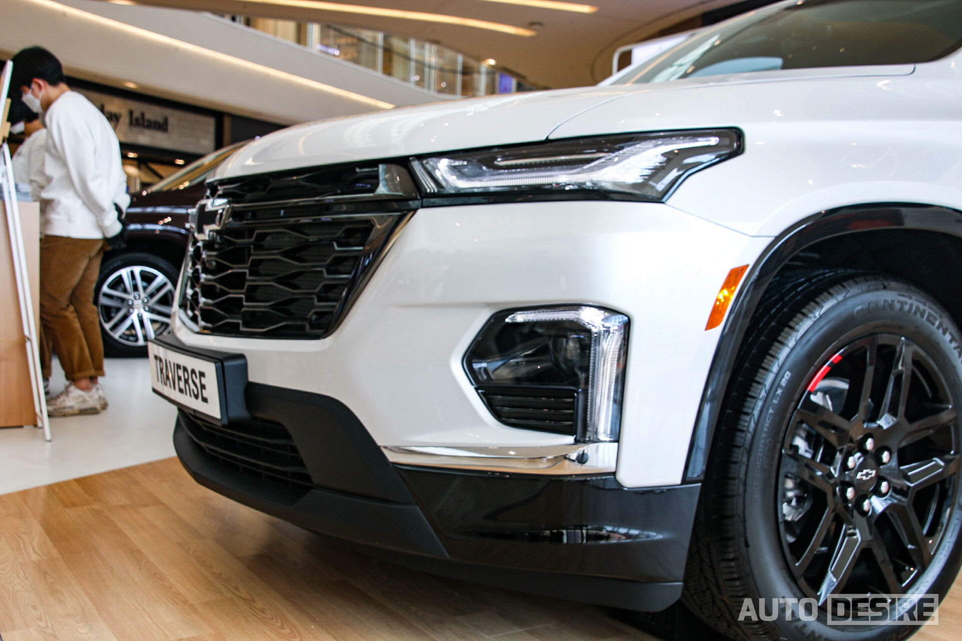 외관에서 가장 크게 달라진 인상을 보여주는 전면부터. 트래버스도 새로운 쉐보레의 패밀리룩을 따르면서 트레일블레이저, 블레이저와 흡사한 인상을 전하고, 이 틀은 전기차인 볼트 EV/EUV와 얼마 전 공개되었던 쉐보레 콜로라도 EV와도 이어지기도 한다. 프런트 그릴 라인은 상하가 더 매끄럽게 이어지는 일체형 육각 형태로 변경되었고, 헤드램프는 컴포지트 타입으로 변경. 상단의 LED 주간주행등과 함께 범퍼로 옮긴 헤드램프에도 기역 형태로 주간주행등이 이어지고 하단 크롬 가니시가 이어져 일체감을 높인다.