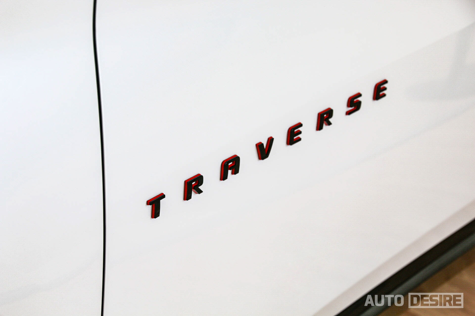 역동적이고 강렬한 느낌의 컨셉을 가진 레드라인 모델은 기존 트래버스 레드라인의 주요 디자인 차별점들을 2022 트래버스에서도 이어나가고 있다. 차의 전면부 금형이 다르지는 않지만 프런트 그릴에 메시 패턴과 블랙 아이스 크롬 액센트, 블랙 보타이를 적용하고 사이드 미러 커버와 루프랙, 도어 핸들, 윈도우 서라운드, 차량 하부 클래딩 역시 블랙으로, 휠도 20인치 레드라인 시그니처 블랙 알로이 휠을 적용해 젊고 시크한 분위기이다.