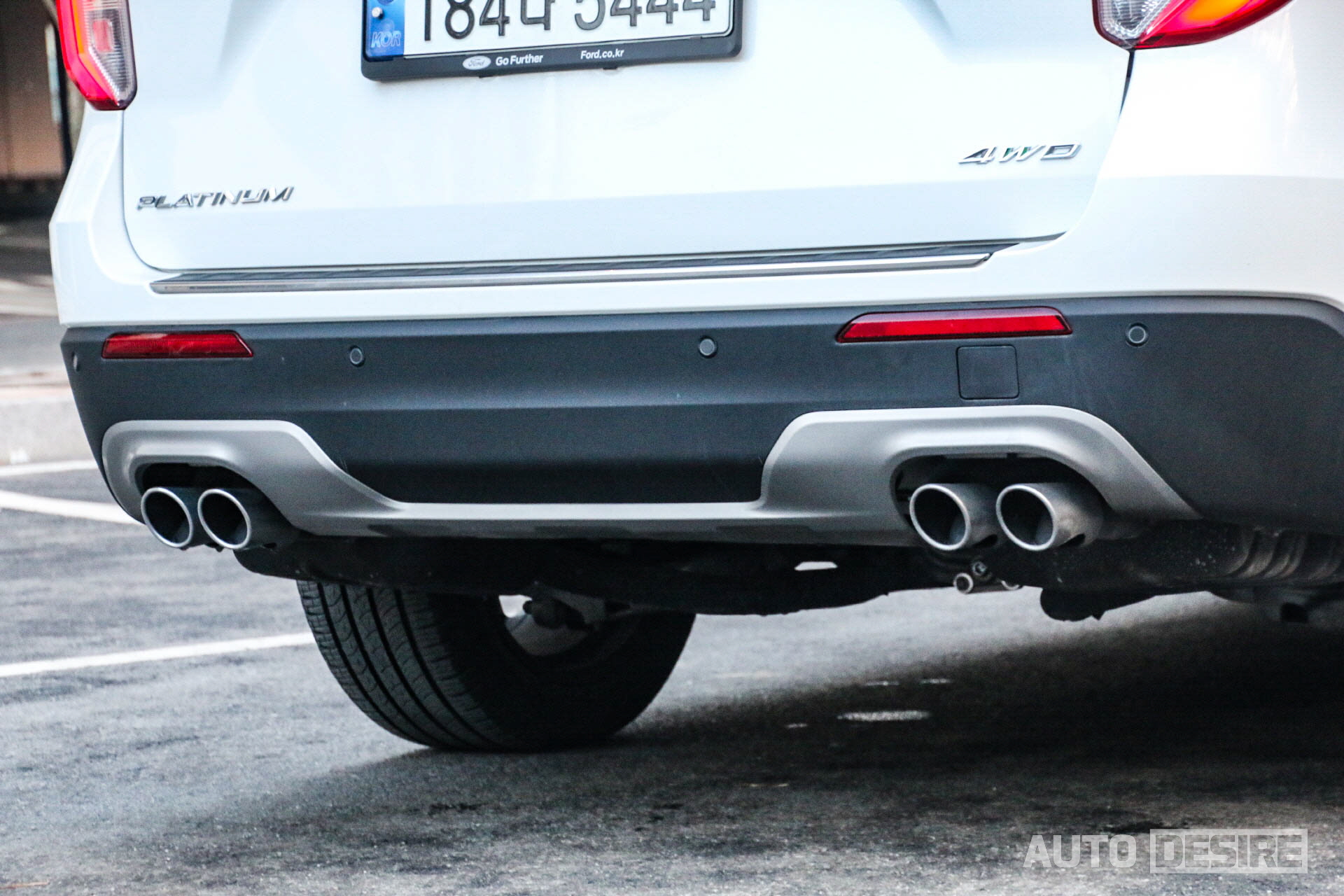 차체 하부 클래딩은 리미티드와 동일하게 무광 블랙 플라스틱 그대로 사용하고 있어, 휠을 제외한 측면의 모습은 크게 다르지 않지만 후면으로 오면 테일게이트에 붙은 플래티넘 레터링 엠블럼 외에도 머플러를 쿼드 팁으로 적용해 듀얼 팁은 리미티드와 비교해 더 꽉 차 보이고 스포티한 감각으로 완성하고 있다.