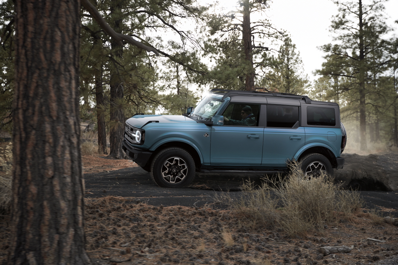 뉴 포드 브롱코는 1세대 모델의 레트로 감성을 이어 받으면서 현대적인 감각으로 재현해 낸 것이 특징으로, 각진 브롱코 레터링 그릴과 원형 헤드램프, 돌출되어 있는 펜더 플레어와 대형 타이어 등이 1세대 브롱코의 아이덴티티를 유지하는 한편 넓은 윤거와 높은 지상고, 짧은 오버행으로 험로 주행에 최적화된 설계를 보여준다. 이를 통해 오프로드와 아웃도어 활동을 즐기는 이들에게 좋은 선택이 될 것으로 보이며, 외장 색상은 에어리어 51, 캑터스 그레이, 카보나이즈드 그레이, 사이버 오렌지 등을 포함해 다양하게 선택이 가능하다.