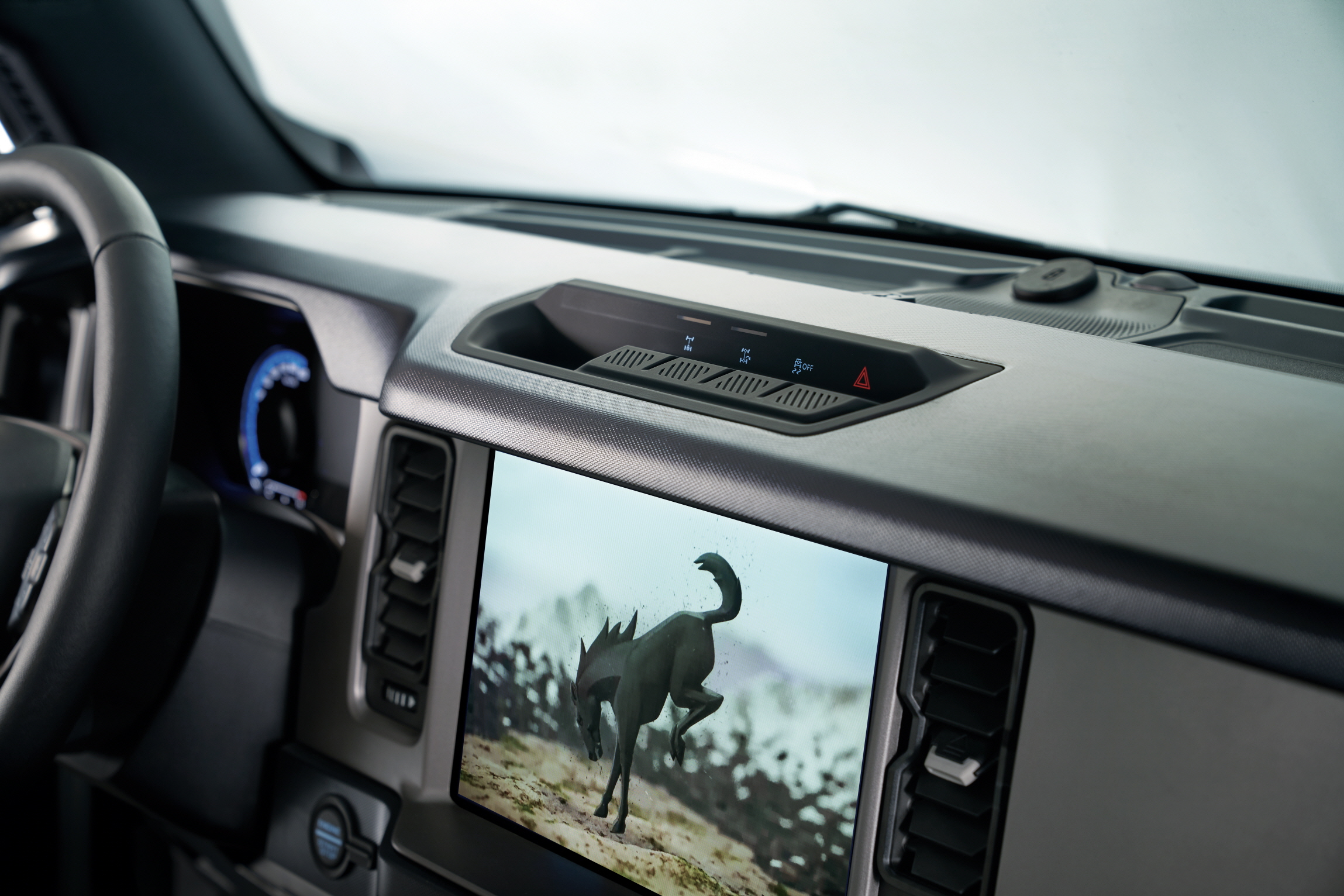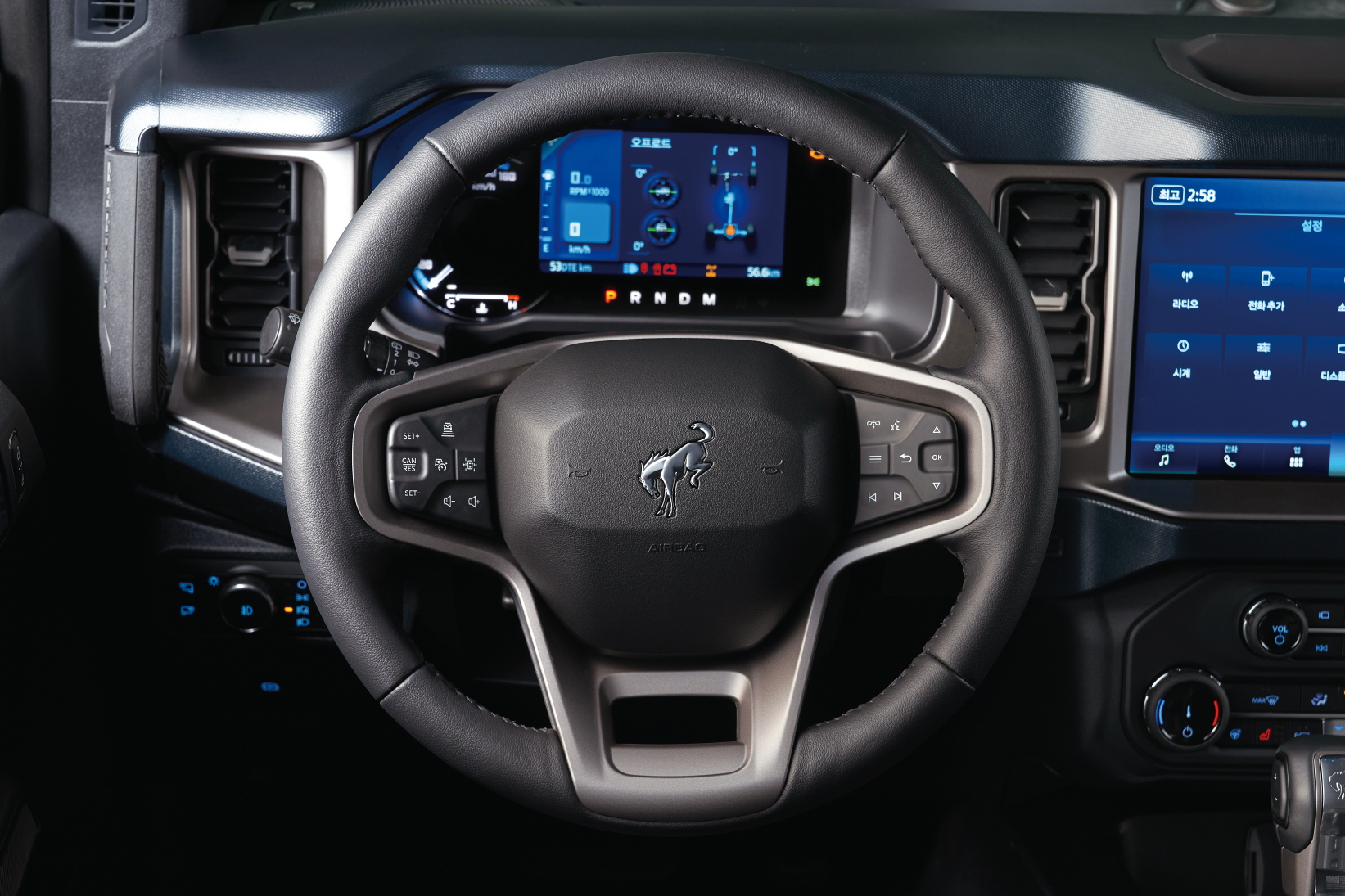 실내에서는 포드 최신 인포테인먼트 시스템 SYNC 4와 음성인식, 무선기기 연결 기능을 지원하고 12인치 터치스크린을 통해서 오프로드 포함 다양한 환경에서 주행에 도움이 되도록 주행 정보를 함께 제공한다. 오디오 시스템은 뱅앤올룹슨 사운드 시스템이 적용된다.