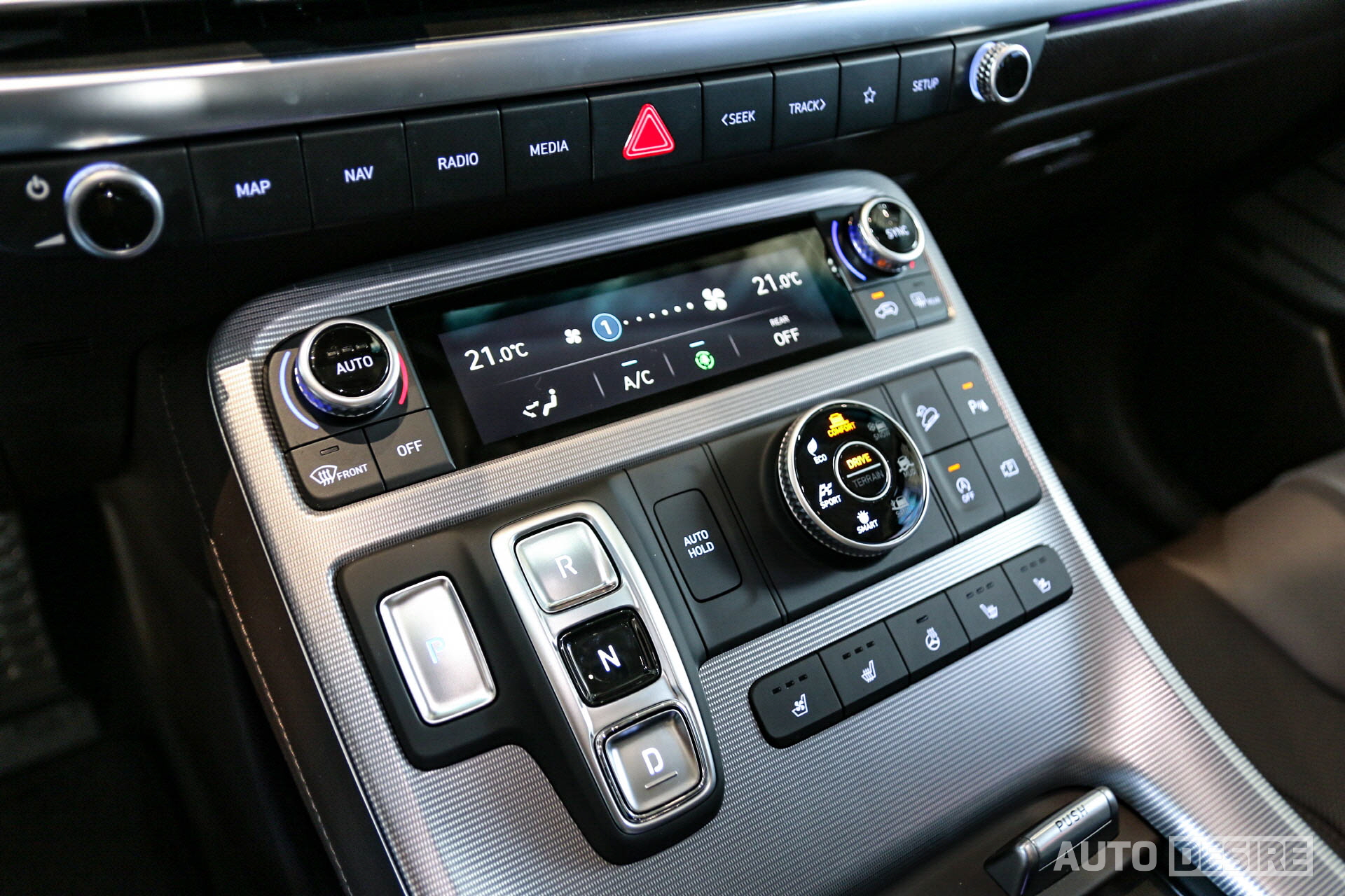 1열 시트는 릴렉션 컴포트 기능과 스트레칭 모드, 볼스터 전동 조절, 레그 레스트까지 추가된 에르고 모션 시트가 적용되고, 스티어링 휠 틸트/텔레스코픽은 전동 조절로, 캘리그래피 트림의 센터 콘솔 커버는 인조 가죽 마감을 더하는 등 상당 부분 고급화가 이뤄진 걸 확인할 수 있다.