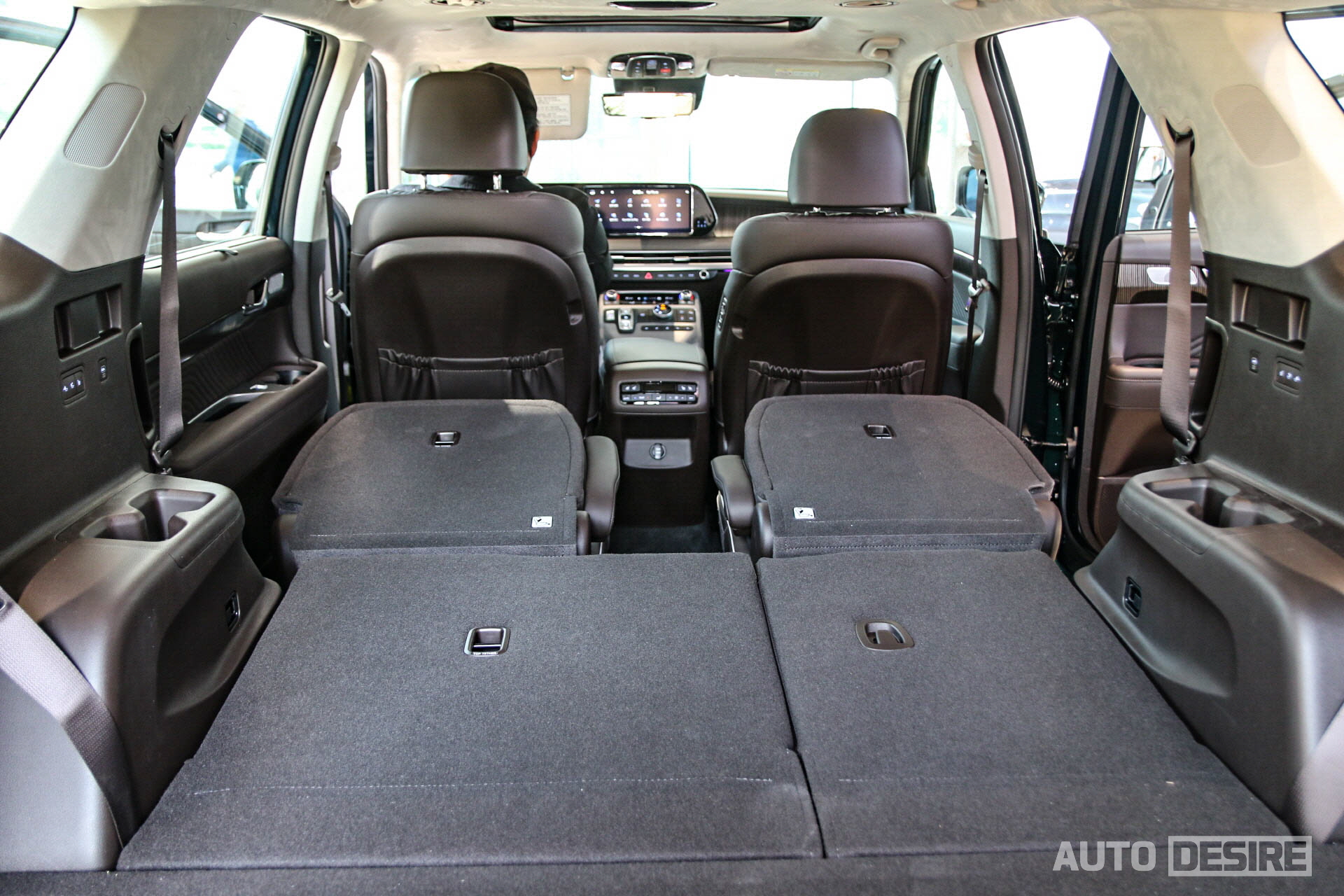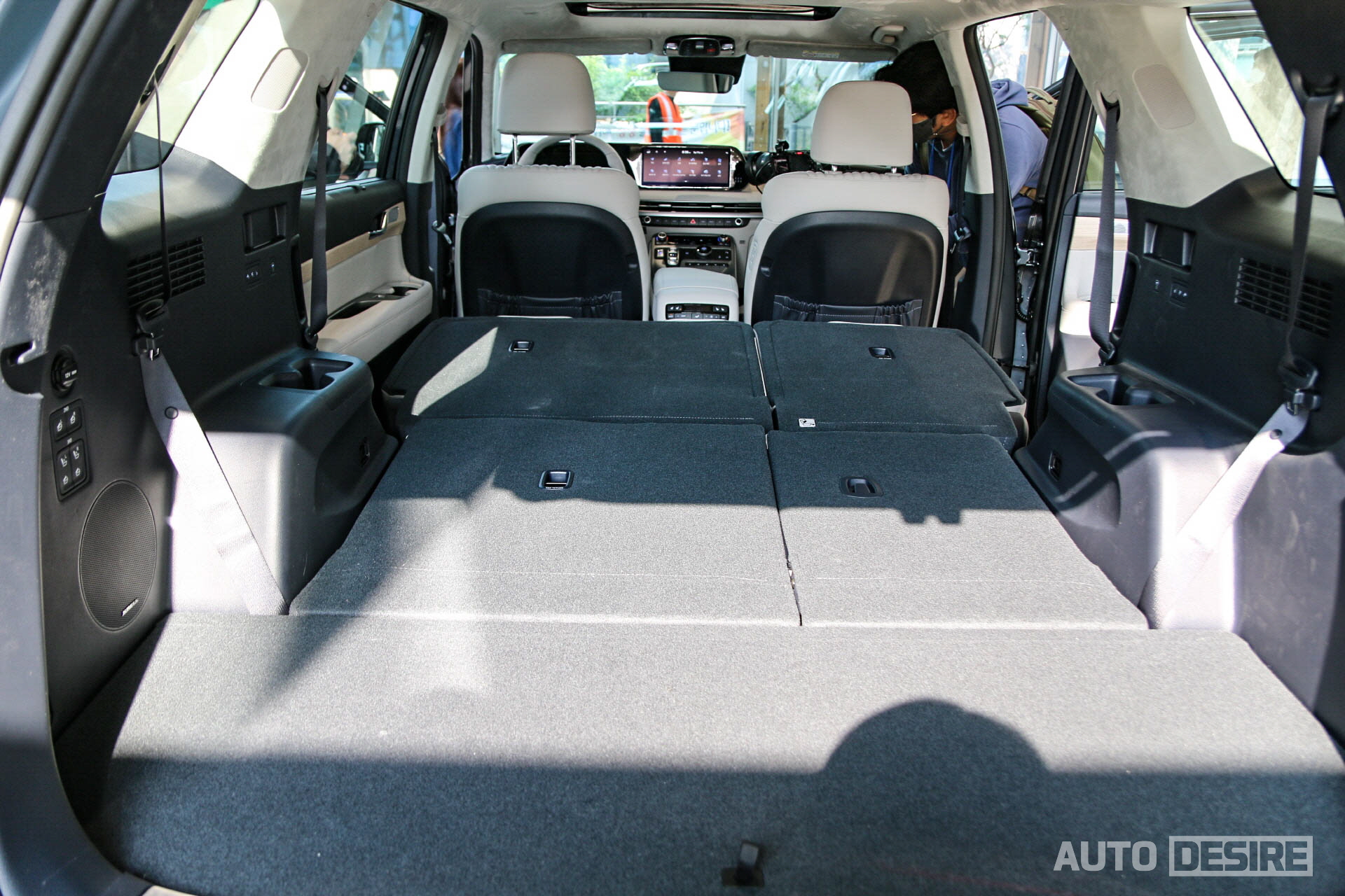더 뉴 팰리세이드로 바뀌면서 전장이 살짝 길어지기는 했지만 이는 사실 외관 범퍼 디자인 변경에 따른 부분이고 기본적인 차체 사이즈는 기존과 동일한데, 기존에도 대형 SUV답게 공간이 넉넉했던 만큼, 3열과 2열까지 모두 폴딩 하게 되면 쭉 뻗은 넓은 공간으로 차박하기에 좋은 모습이다. 기존과 동일하고 3열은 접고 펴는 것 모두 전동, 2열은 원터치 폴딩을 지원한다.