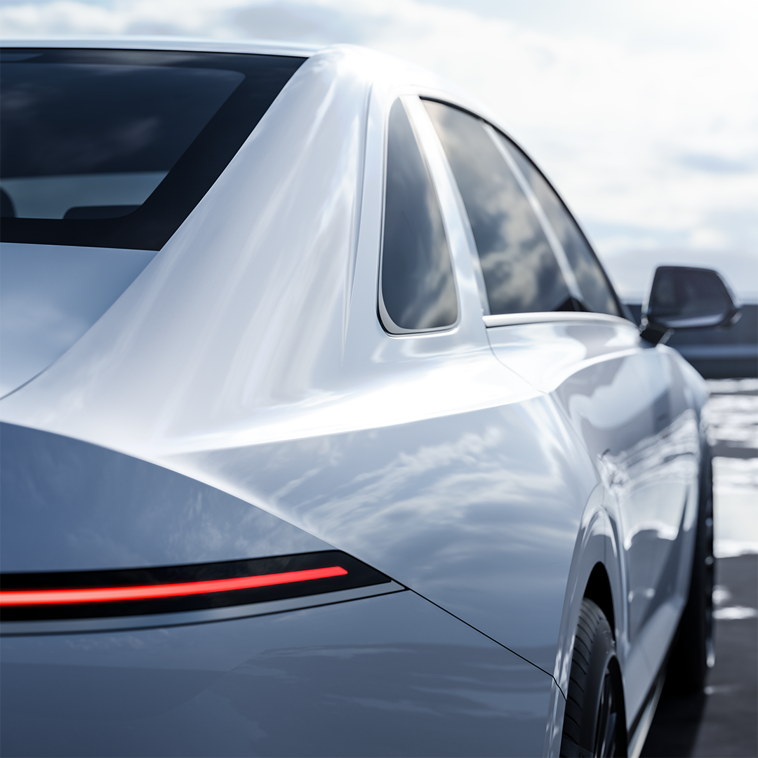 끊김 없이 연결된 수평형 램프(심리스 호라이즌 램프)는 밤과 아침 사이 새벽의 경계선에서 영감을 받아 디자인했다고 하며, 범퍼에 위치한 헤드램프와 웅장한 사이즈의 통합형 그릴이 강한 존재감을 드러낸다.