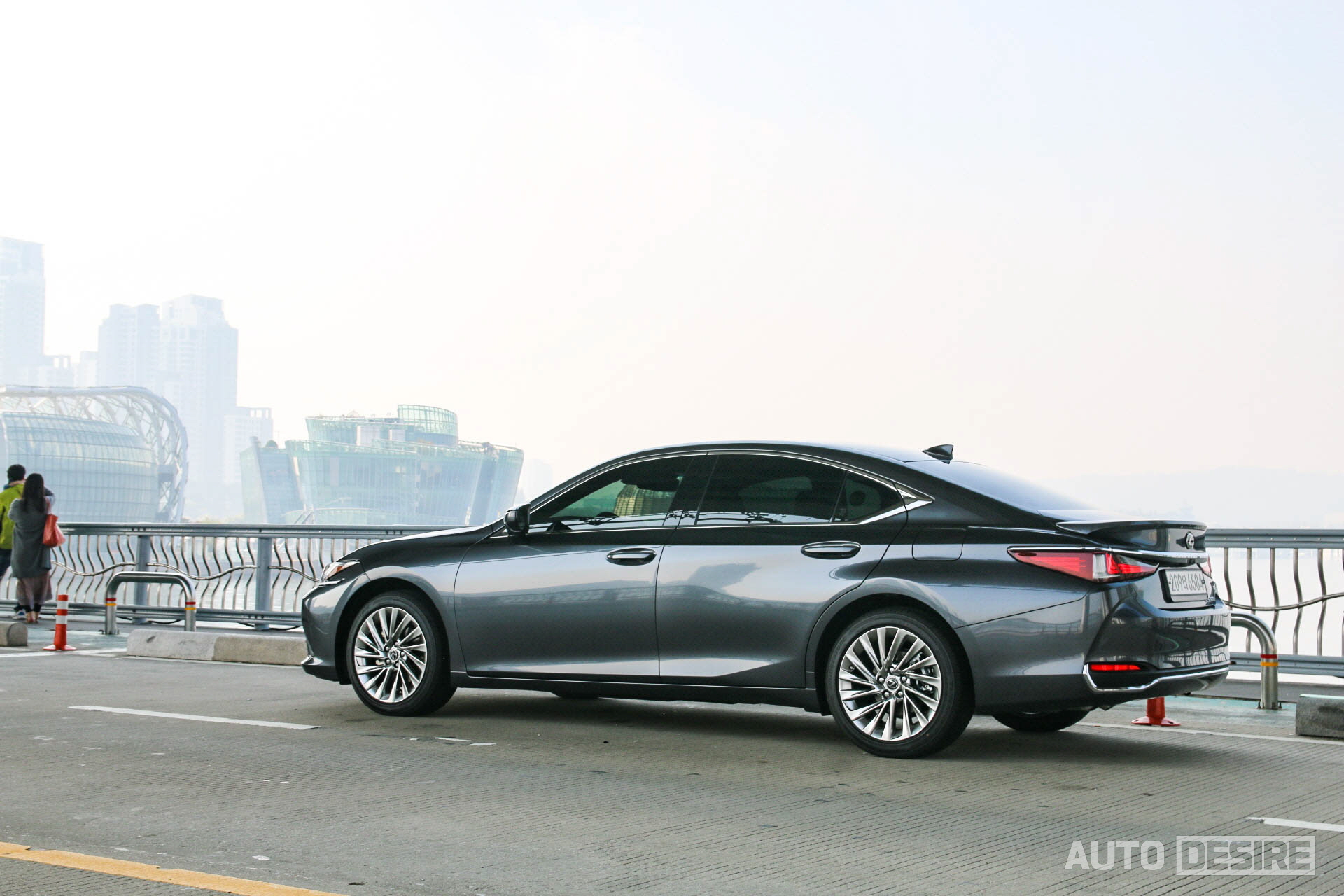 측면에는 유선형의 루프라인과 날렵하면서도 볼륨감까지 놓치지 않은 형상이 프리미엄 세단에 어울리는 우아한 분위기도 연출한다. 트렁크 리드를 날카롭게 파고드는 리어램프와 렉서스의 상징 중 하나인 L 형태 리어램프 그래픽, 트렁크 리드를 길게 가로지르는 크롬 라인도 수평이 아닌 완만한 곡선을 그리면서 같은 세그먼트의 유럽 차량들과 비교 시 독특한 렉서스만의 감각으로 매력을 전한다.
