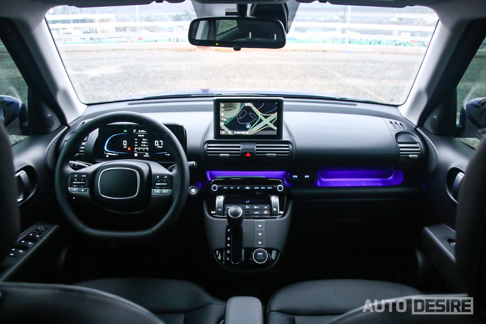 캐스퍼 디 에센셜의 진짜 메리트는 실내 편의 사양 구성에 있다. 전체적으로 쭉 둘러보면 인스퍼레이션과 비교해 봐도 큰 차이를 알아보기 어렵고, 기존 모던 트림에서는 선택 품목으로 추가해야 했던 것들 상당 부분이 기본 적용되어 있어 운전자를 더 편안하게, 만족감을 높여준다. 보라색 단색이기는 하지만 무드램프가 적용되는 것도 고급감을 꽤나 높여주는 포인트.