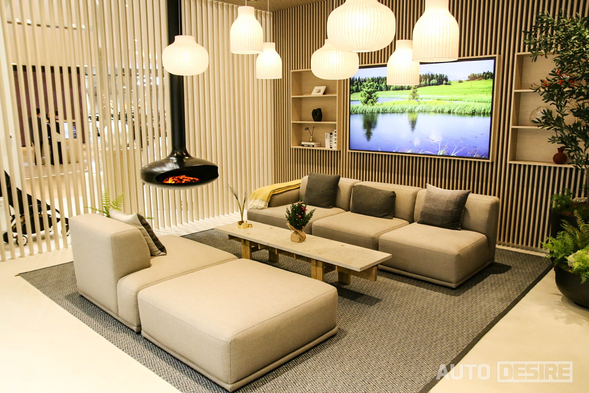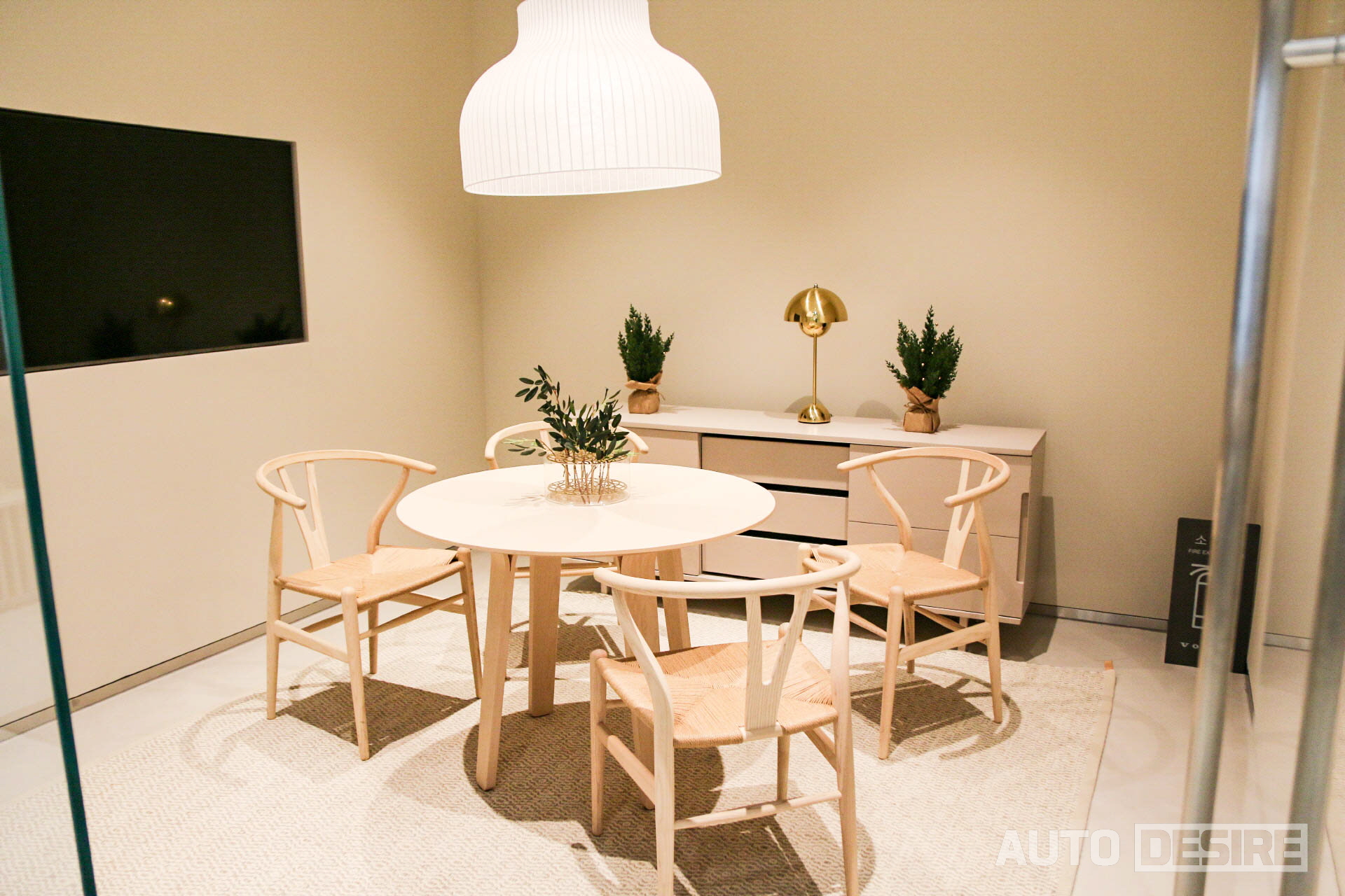 고객 라운지와 상담 공간 역시 북유럽 특유의 심플하면서 포근한 분위기를 제공하는데, 테이블과 의자, 소파 등 가구 하나하나 스웨덴에서 직수입한 가구를 사용하고, 애쉬우드 인테리어 마감재와 벽난로까지 더해 스칸디나비아의 리빙룸 형태, 스웨덴의 거실에 온 것 같은 경험을 제공한다. (물론 벽난로는 실내 환경에 맞게 실제 불을 붙이는 난로는 아닌 무드램프이다.)