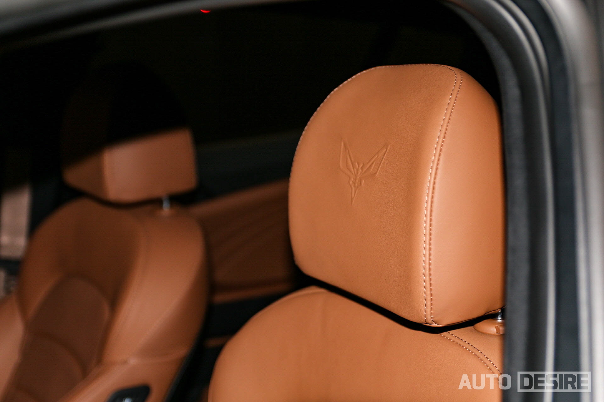 실내에서는 트리뷰트 에디션 적용으로 신규 내장 색상인 '테라코타 브라운 인테리어'를 적용, 시트와 도어 트림 마감부가 브라운으로 바뀌면서 고급스러운 느낌을 주고, 차량명(스팅어 - 쏘는 놈..?)에서 착안한 말벌 모양 엠블럼을 추가한 것이 특징이다. 말벌 엠블럼이라길래 어떤 형태로 구현했을까 궁금했는데, 각이 잡혀있는 강인한 느낌이라 스팅어의 이미지에도 잘 어울리는 것 같다.