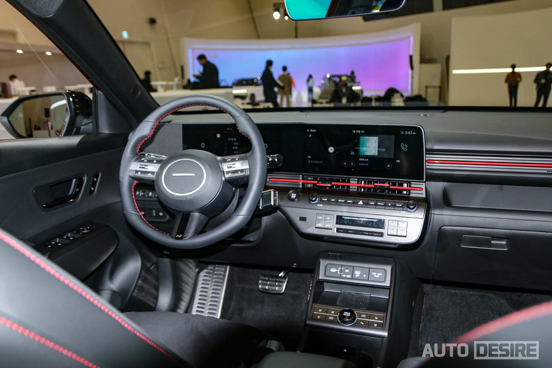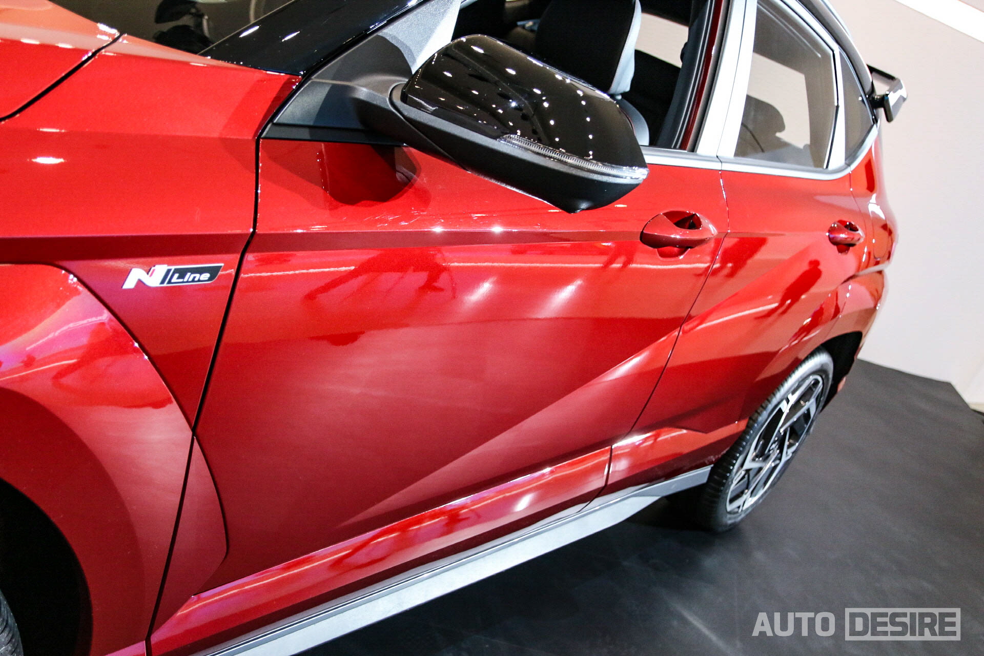 실내에서는 N 라인 전용 블랙 원톤에 송풍구 가니시와 스티어링 휠 스티치, 시트 스티치 등에 레드 포인트 컬러가 적용된다. 스포티한 분위기를 만들기에 가장 괜찮은 조합이고, 기존의 다른 현대 N 라인 모델들에게도 적용되었던 조합. 스티어링 휠 하단 스포크에는 N 배지가 적용된다.