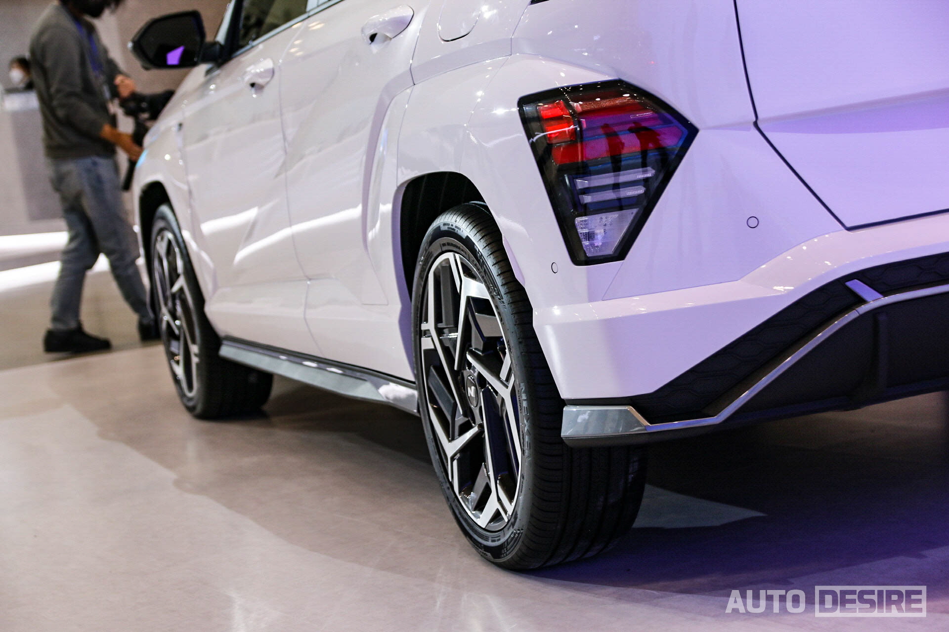 측면에서는 벨트라인 하단에서 스포일러로 이어지는 크롬 가니시, 아반떼/투싼/아이오닉 5 등에 먼저 적용된 것처럼 날카로운 선의 사이드 캐릭터 라인을 더했고, 여기에 동급 최대 사이즈인 19인치 휠로 소형 SUV에 어울리는 역동적인 스타일을 이어간다. 19인치 휠의 디자인은 표면은 공력 성능을 의식해서인지 평평하지만, 스포크 디자인은 삼각형이 겹쳐진 형태로 역시 액티브한 느낌을 준다.