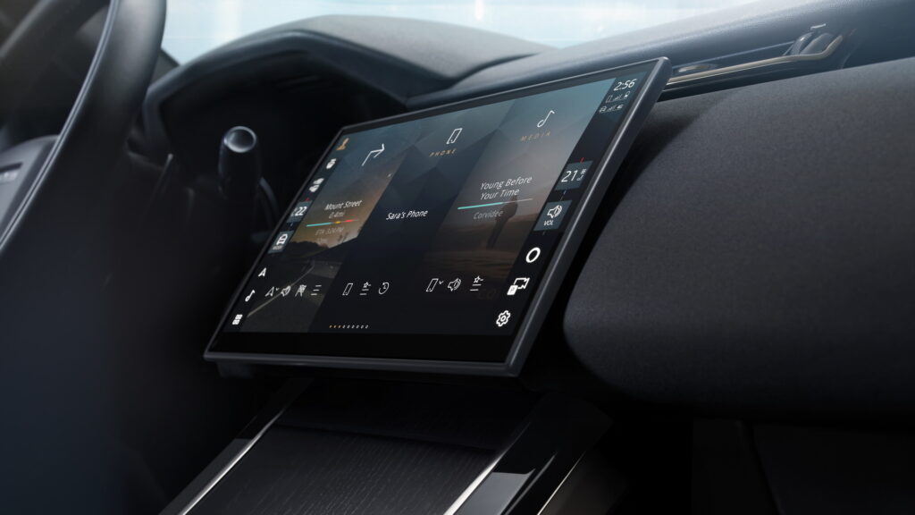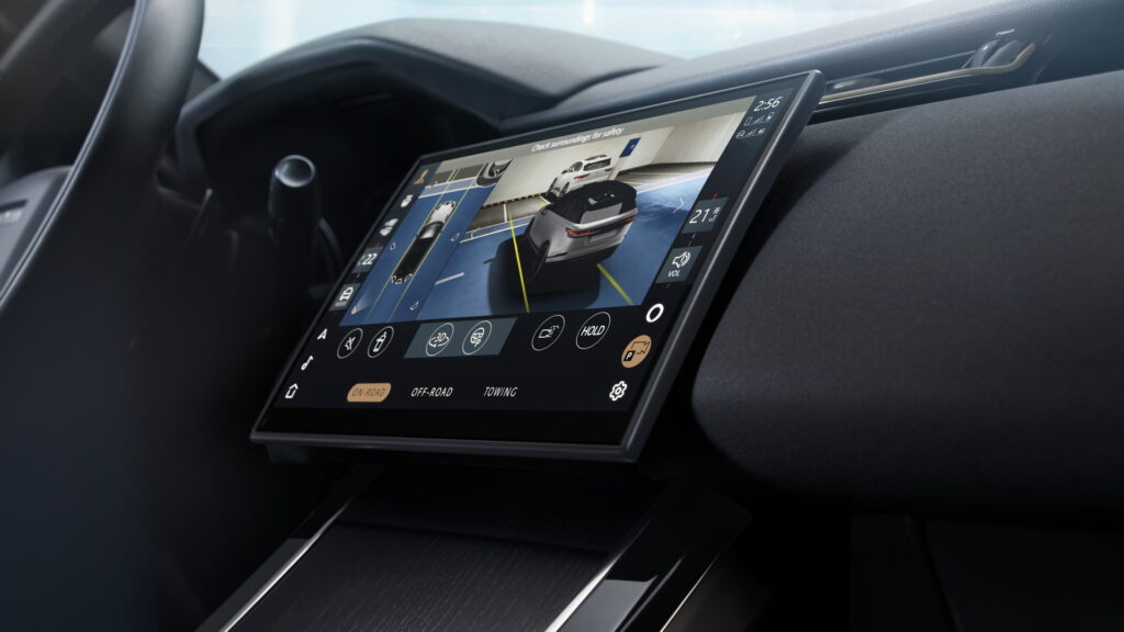 실내는 외관에 비해 더 뚜렷한 변화를 보여준다. 센터 콘솔에 다이얼 타입으로 적용되어 있던 기어 셀렉터는 전통적인 기어노브 타입의 전자식 셀렉터로 변경되었다. 또 기존에 상단/하단으로 구분되어 듀얼 스크린으로 나뉘었던 센터 터치스크린이 11.4인치 커브드 글라스 터치스크린 하나로 통합되었으며, 기존에 하단에 위치해있던 공조 컨트롤 패널도 여기에 포함된다. 이를 통해 스티어링 휠 버튼을 제외하면 물리적인 버튼들은 모두 사라지게 되었으며, 랜드로버 측의 설명에 따른 80% 정도의 기능들은 홈 스크린에서 두 번 탭 하는 것만으로 모두 작동이 가능하다고 한다.