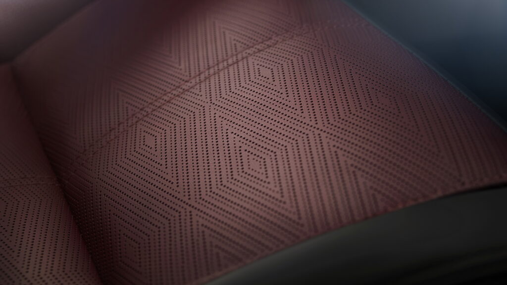 가죽 인테리어의 경우 클라우드, 캐러웨이, 레이븐 블루, 딥 가넷 색상을 선택할 수 있으며, 직물 인테리어의 경우 Kvadrat 울 블렌드와 울트라패브릭 폴리우레탄 직물이 적용된다. 트림에 따라서 문라이트 크롬이나 사틴 버니시드 코퍼 액센트를 스티어링 휠과 대시보드에 적용할 수 있고, 센터 콘솔에는 섀도우 그레이 애시 우드 베니어 트림이 적용된다. 옵션으로 아노다이징 처리된 밝은색 알루미늄 트림이나 어두운색 알루미늄 트림도 선택할 수 있다.