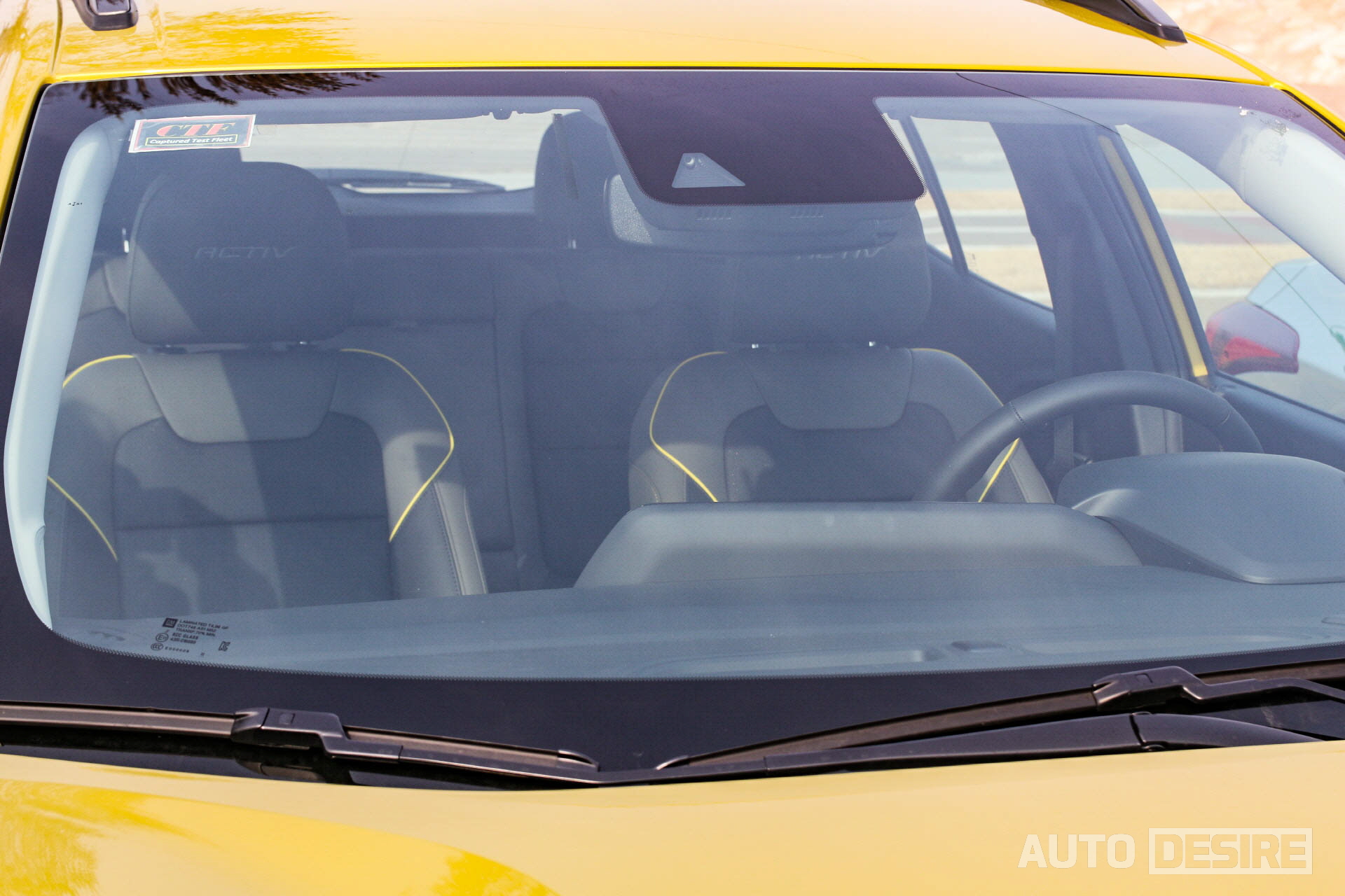 아직 정식 출시된 차량도 아니고, 전시 차량도 아닌 만큼 차 실내를 막 열어볼 수는 없으니 실내는 유리 너머로 살펴보는 것으로 만족. 액티브 트림의 시트에는 라임색상 포인트 컬러와 함께 해드레스트에 액티브 레터링이 적용되었다. 스티어링 휠과 기어노브, 각 버튼 류는 트레일블레이저와 거의 동일한 모습으로 익숙한 형태이며, 파노라마 형태로 크게 들어간 디스플레이 사이즈가 인상적이다.