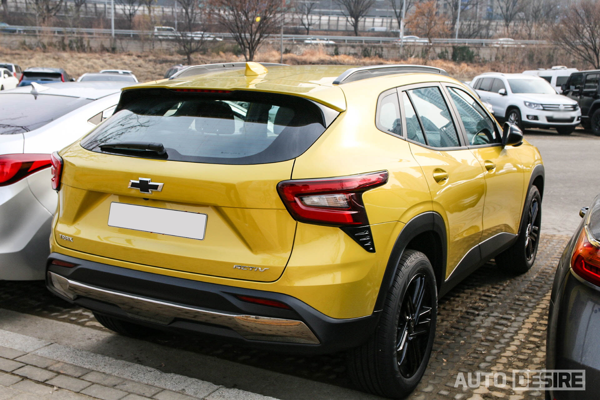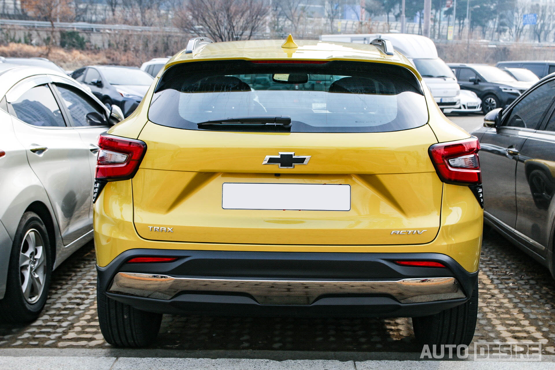 후면에서도 전면과 동일하게 엠블럼은 블랙 보타이로 적용되어 있고, 왼쪽에 트랙스, 오른쪽에 액티브 레터링이 적용된 모습. 테일램프도 상단을 펜더 라인을 따라 파고들게 디자인하고, 하단에 에어커튼 데코를 더해 역동적인 느낌을 준 것은 좋은데, 리어 램프 간격이 멀리 떨어져 있는 반면 테일게이트 부분에는 별도 가니시, 몰딩은 더해지지 않아 허전한 감이 들기도 한다. 번호판 상단에 하이그로시나 크롬 몰딩을 더하거나 램프 디자인을 안쪽으로 더 길게 빼줬어도 좋았을 것 같다.