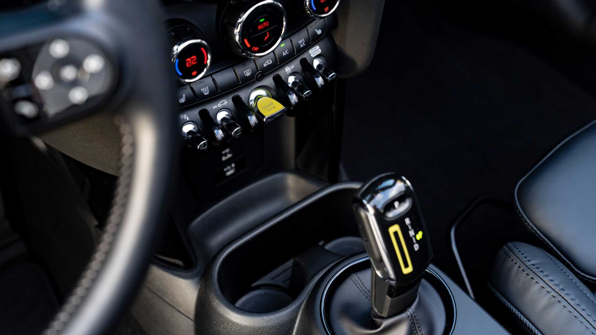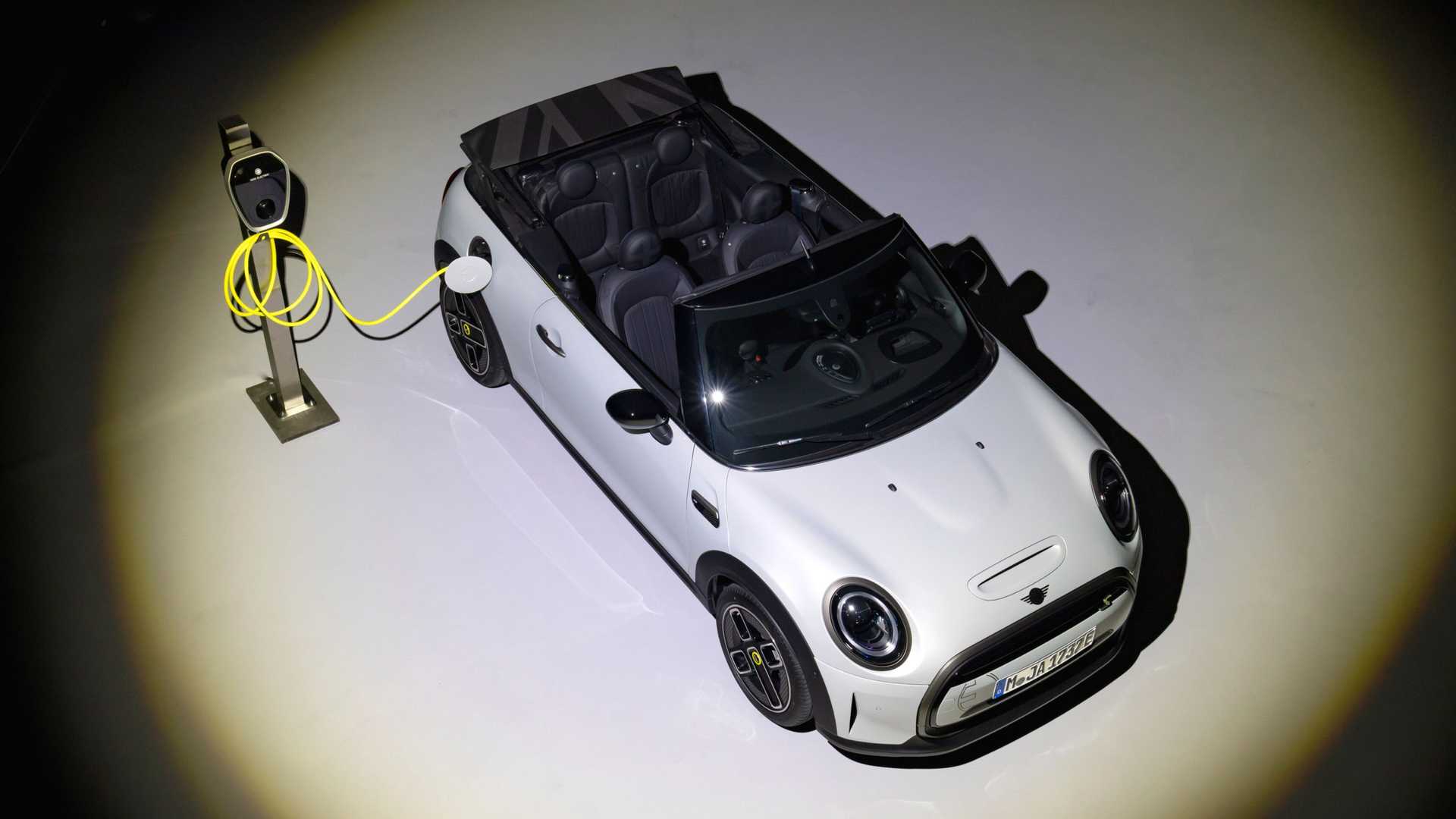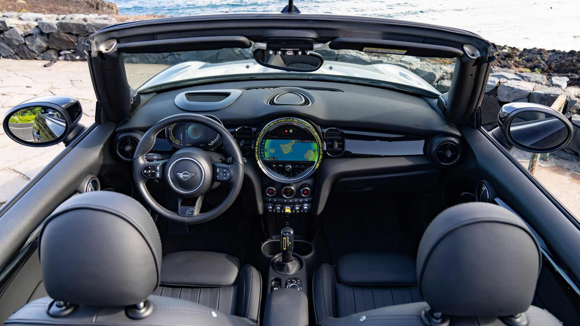 실내 역시 미니 일렉트릭의 특징인 형광색 시동 버튼과 기어 노브 포인트, 클러스터 게이지 컬러 등이 적용된 모습으로 완전하게 루프 개방이 가능하다는 차이 정도 외에는 해치백 모델과 동일한 모습이다.