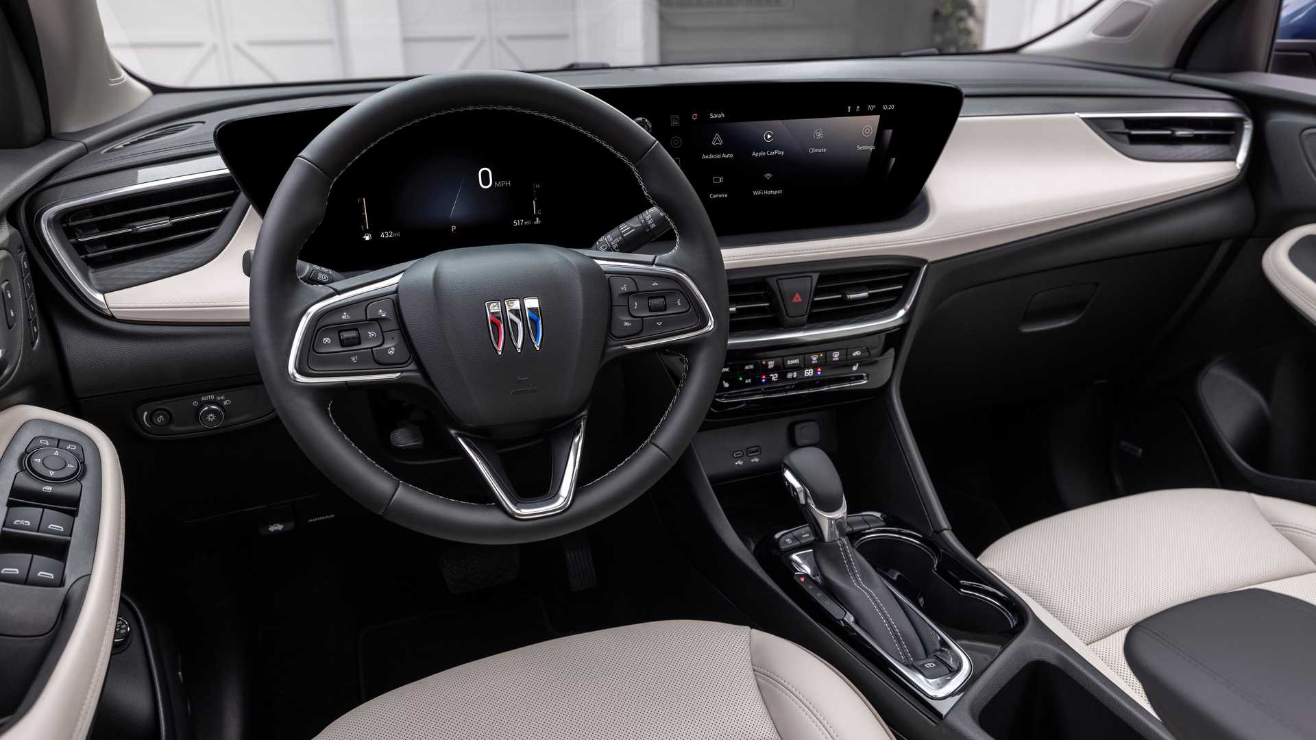 실내에서는 뷰익에서 '버츄얼 콕핏 시스템'이라 부르는 신규 인테리어 사양이 적용, 트레일블레이저 페이스리프트 모델이 그런 것과 마찬가지로 8인치 디지털 클러스터 계기판과 11인치 센터 디스플레이가 적용되었고, 비상등 위치도 송풍구 사이 중앙으로 변경되었다. 공조 컨트롤러는 송풍구 하단에 위치하며, 센터 콘솔 부분은 기존과 크게 달라지지 않았다.