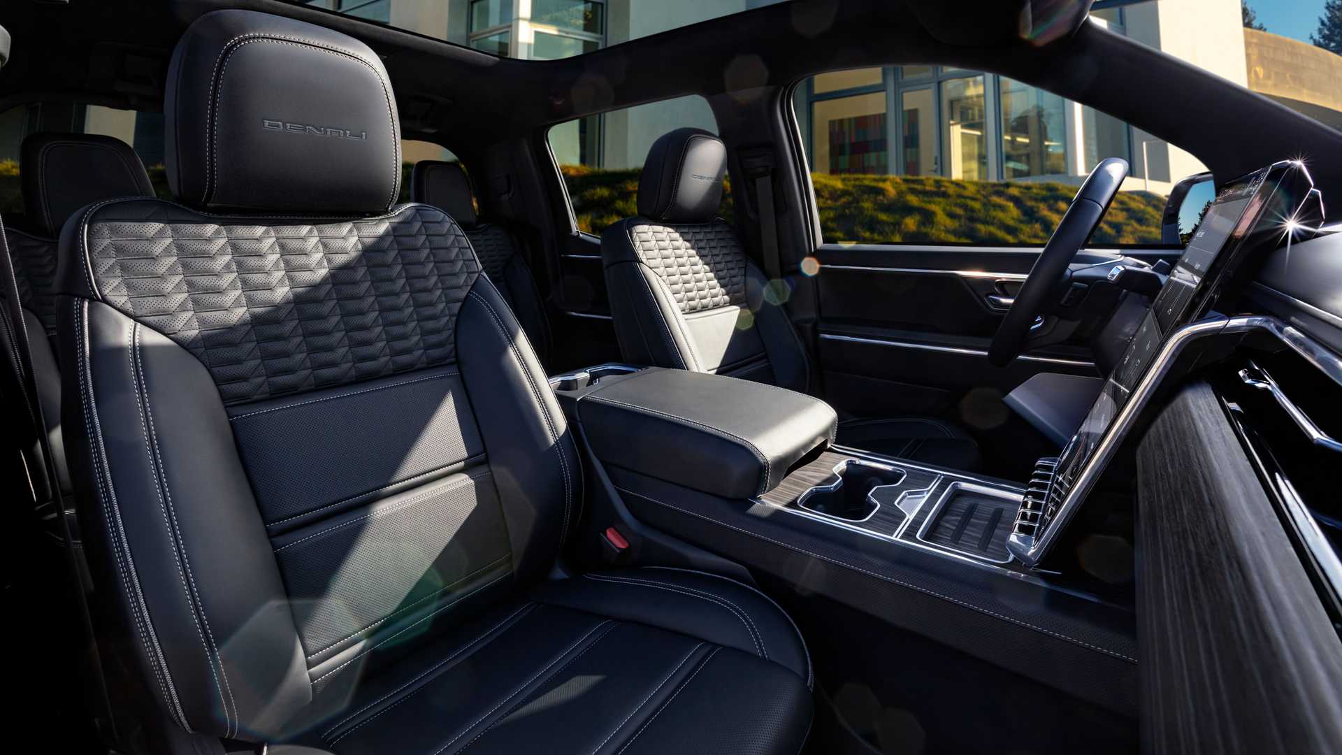 실내에서는 물리 버튼을 최소화하고, 센터에 16.8인치 대화면 스크린과 함께 11.8인치 클러스터 디스플레이를 적용해 깔끔하면서도, 미래적이고 각 소재들을 통해 시에라 드날리에서 느낄 수 있는 고급감도 유지했다. 실내 소재는 우드와 알루미늄 트림이 적용되며, 편의 사양으로는 파노라믹 루프와 보스 서라운드 사운드 시스템, 핸즈프리 시동 시스템이 적용되며, 주행 보조 시스템으로 슈퍼 크루즈와 총 14개의 카메라가 적용된다.