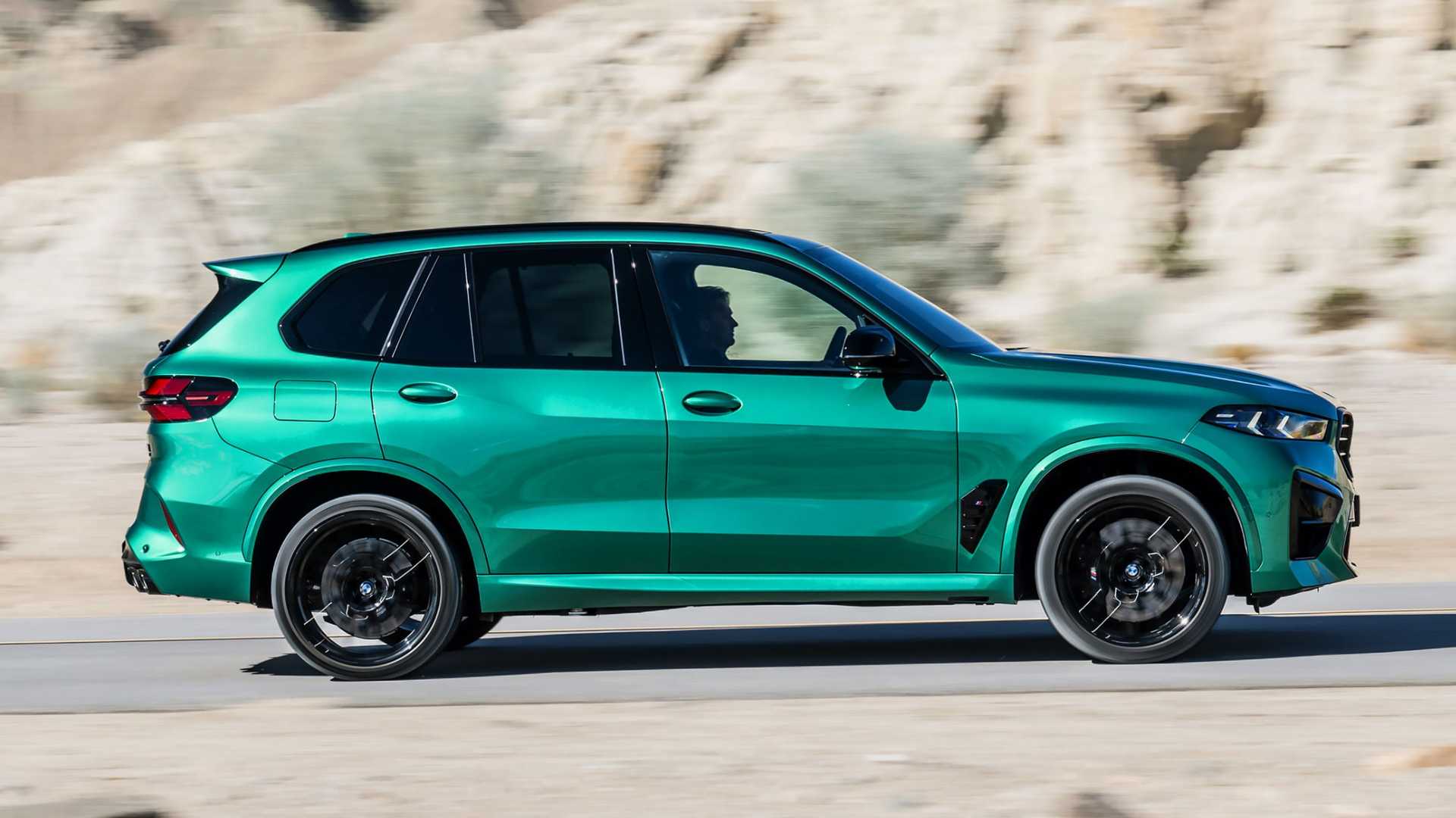 후면에서도 X5 LCI 모델과 동일한 신규 그래픽의 LED 리어 콤비네이션 램프를 적용했는데, 그 외 부분은 쿼드 머플러 팁과 리어 디퓨저 등 현행 X5 M과 크게 달라지지는 않은 모습이다. 휠은 신규 디자인의 트윈 10-스포크 타입의 블랙 휠이 장착되며 전륜은 21인치, 후륜은 22인치이다.