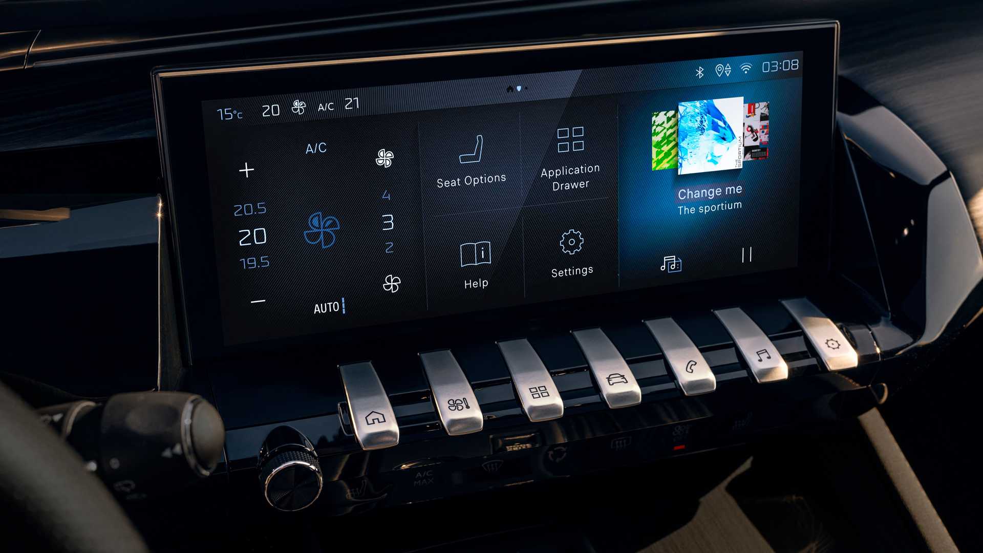 실내에서는 푸조 특유의 i-콕핏 레이아웃을 유지하면서 스티어링 휠 혼 커버에 신규 푸조 엠블럼을 달고, 센터 콘솔의 길쭉한 기어 시프트 레버는 토글 버튼 타입으로 심플하게 변경했다. 12인치 디지털 클러스터는 내비게이션 화면 및 미디어, 운전 보조 시스템 상태를 보여주는 신규 그래픽 디스플레이를 적용하고, 10인치 센터 디스플레이 내 인포테인먼트 시스템은 무선 업데이트 지원 및 커스텀 설정이 가능한 위젯과 스크롤 창, 음성 인식을 지원한다.