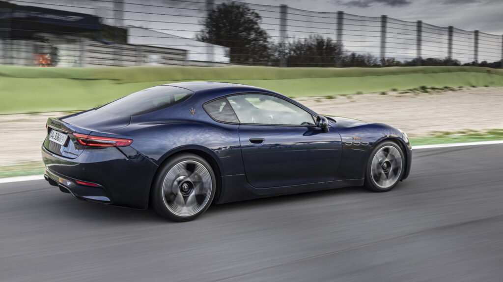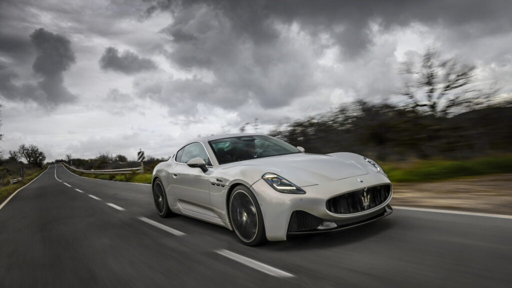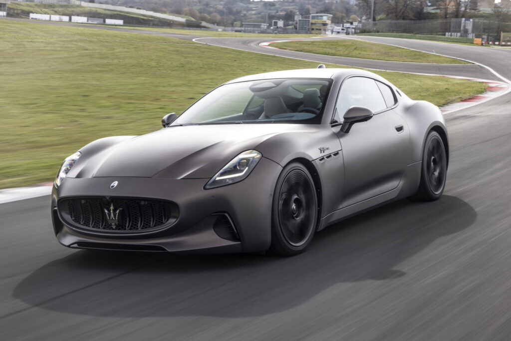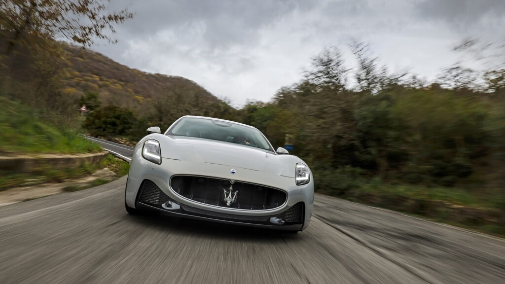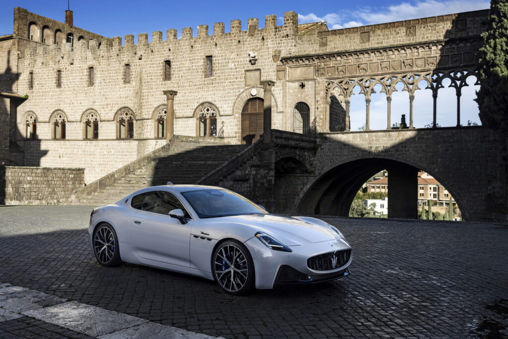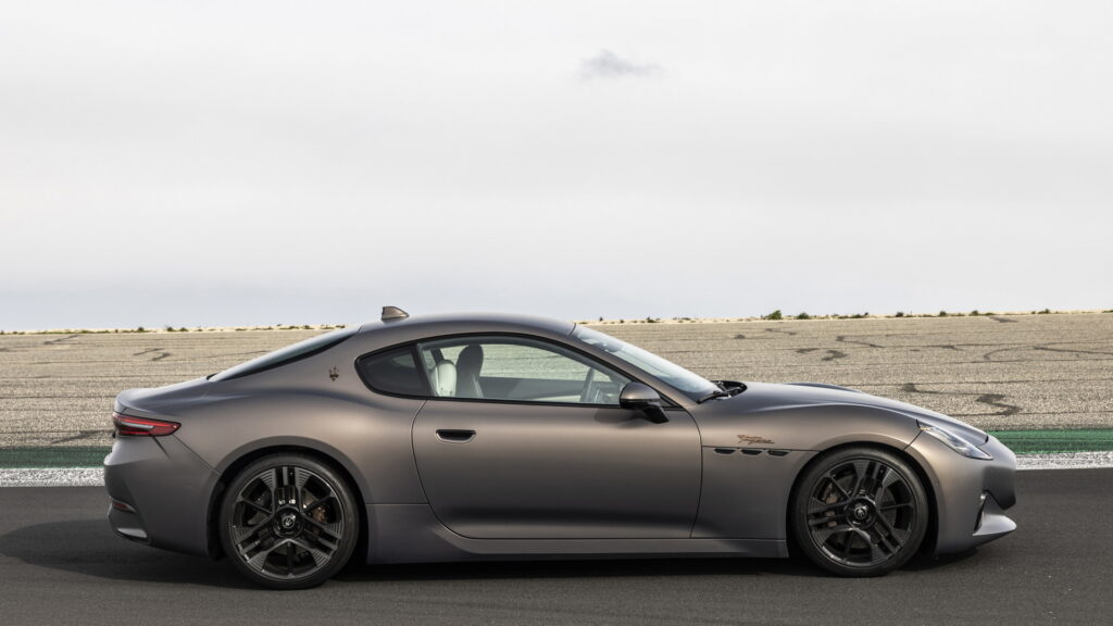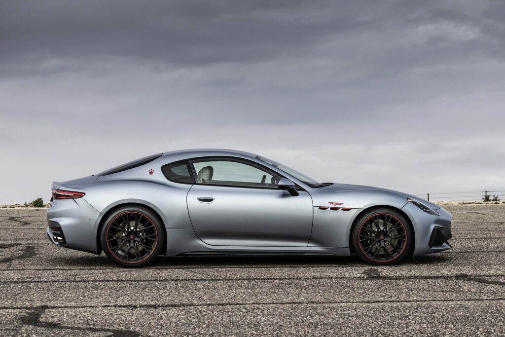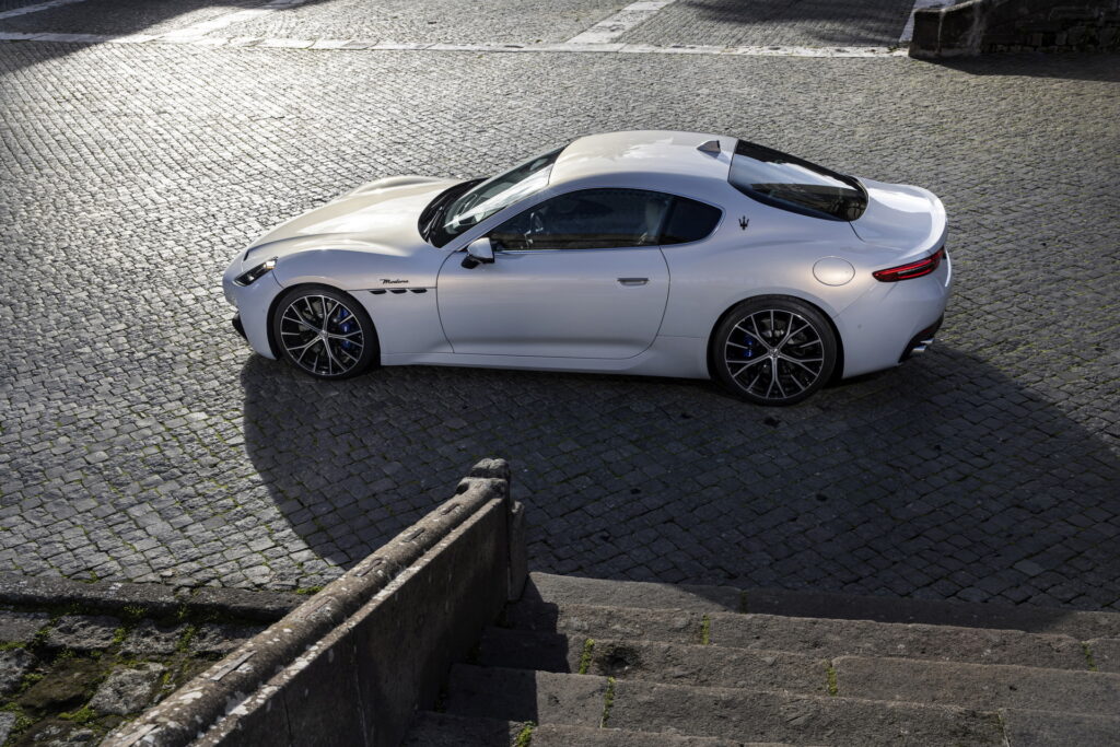 2023 신형 마세라티 그란투리스모는 전 세대 모델과 콘셉트카였던 알피에리와 마찬가지로 긴 노즈에 날렵하면서도 볼륨감 있는 특유의 GT 쿠페 바디 라인을 이어나간다. 전면부 중앙에도 특유의 그릴 형태와 마세라티를 대표하는 삼지창 엠블럼, 또 후드 부분에 원형 엠블럼을 추가로 장착하면서도 기존의 가로로 배치되어 있는 날카로운 인상의 헤드램프와 다르게 마세라티의 새로운 패밀리룩에 맞춰 MC20과 비슷하게 수직형으로 배치된 헤드램프를 적용한 것이 특징이다. 인상이 꽤 크게 달라지기는 했지만, 그란투리스모가 가지고 있던 특유의 라인과 분위기는 잘 이어지는 느낌이다.