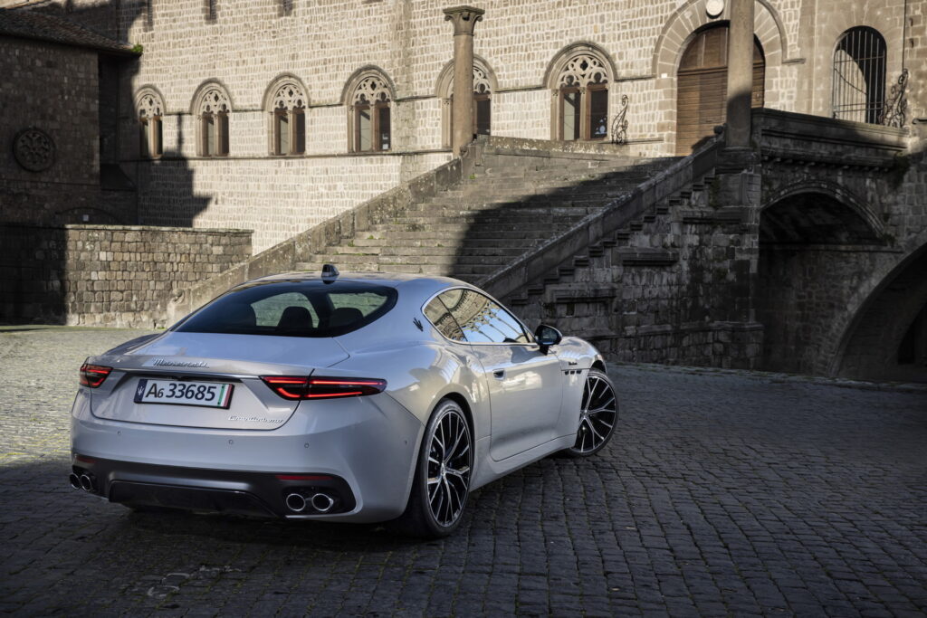프런트 펜더 측면에도 마세라티 모델들이 공통적으로 가지고 있는 아이덴티티 중 하나인 세 개의 에어벤트 가니시 디자인을 유지했으며, 그 위에 모데나-트로페오-폴고레 각 모델별 레터링이 적용된다. C 필러에 부착된 삼지창 엠블럼 역시 마세라티의 특징을 이어가고 있다. 후면에서는 리어 콤비네이션 램프가 기존과 비슷한 형태이면서도 훨씬 더 슬림하고 샤프한 스타일로 달라졌으며, 범퍼 하단 중앙에는 리어 디퓨저가, 좌우에는 쿼드팁 머플러가 적용되면서 우아하면서도 스포티한 GT 쿠페의 매력을 전달한다.