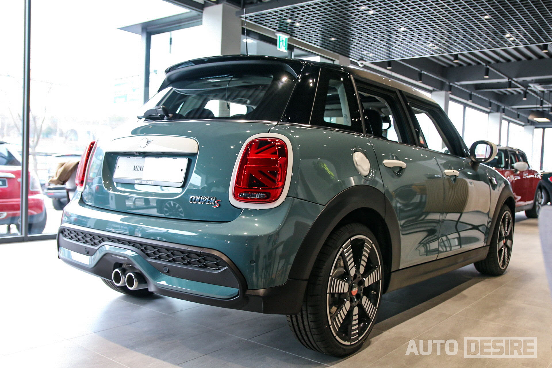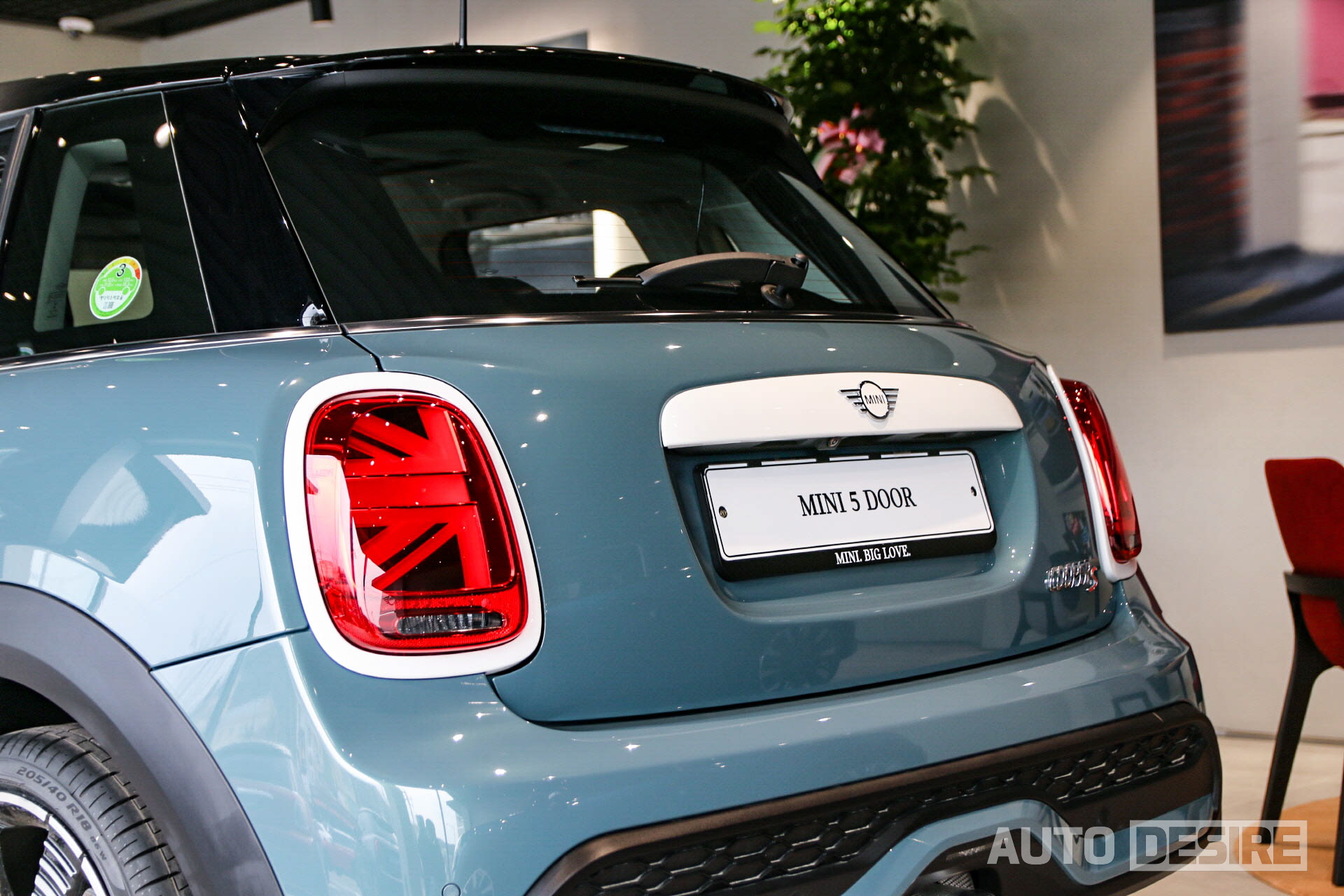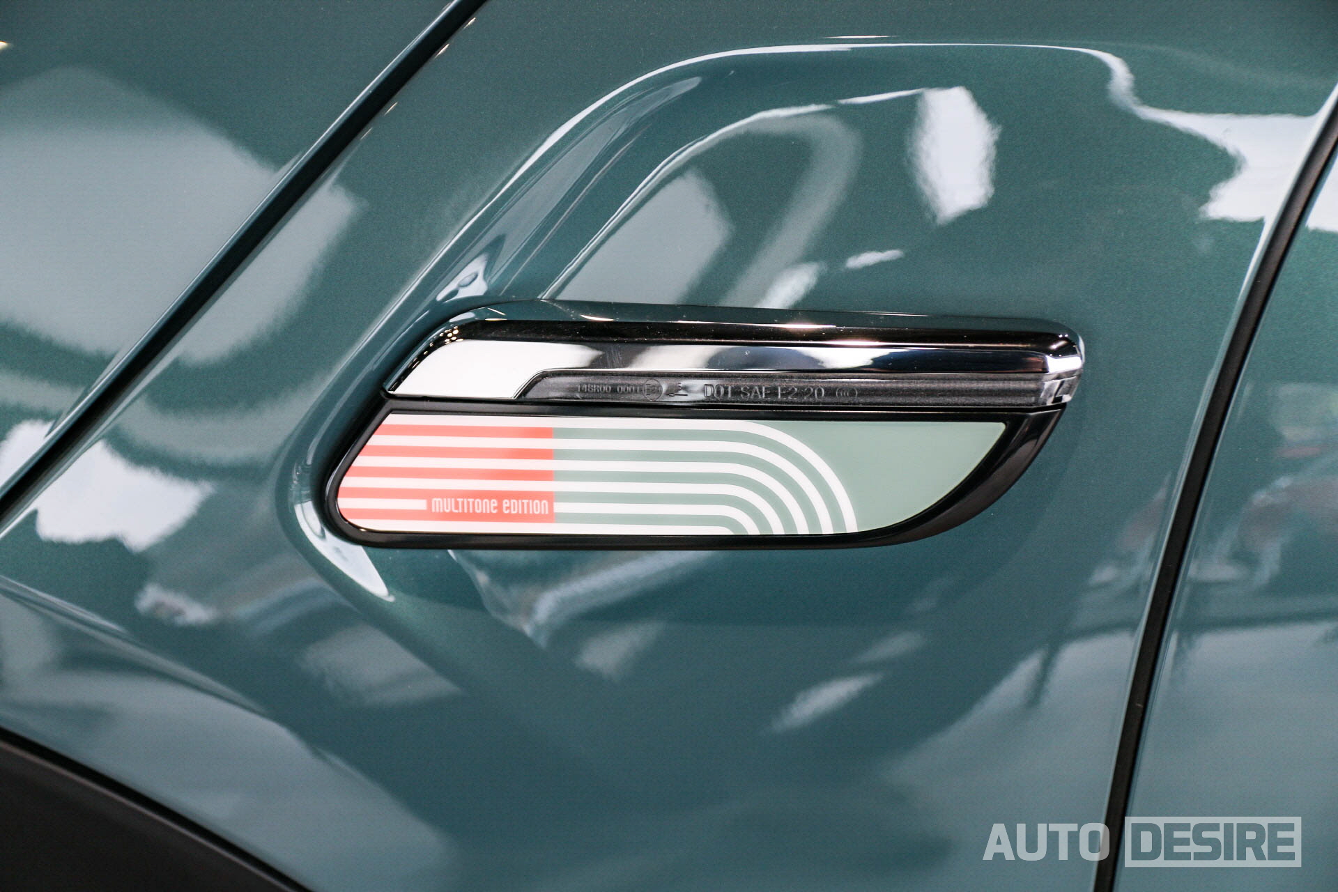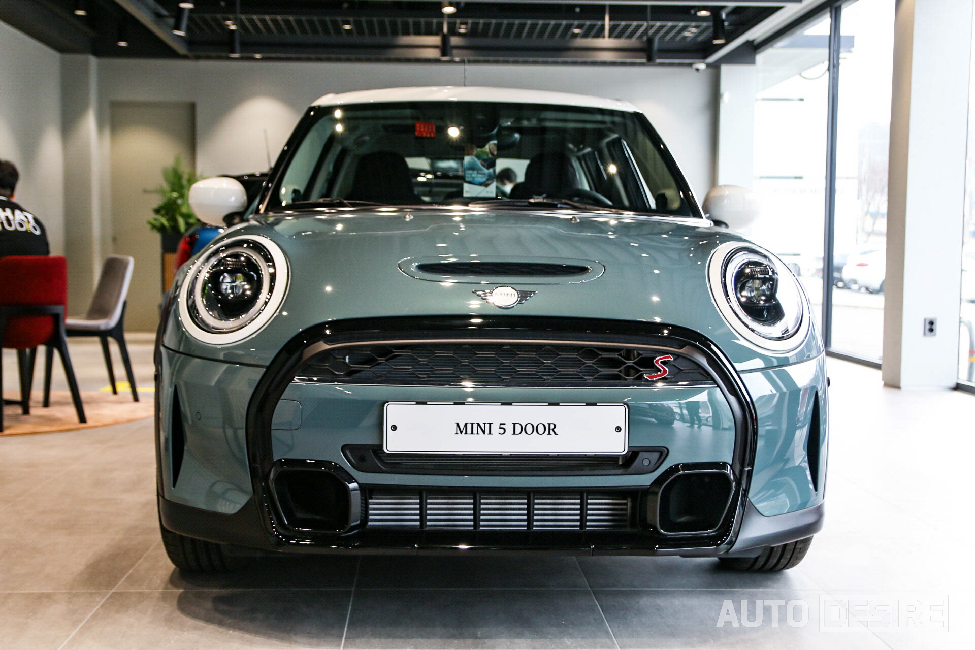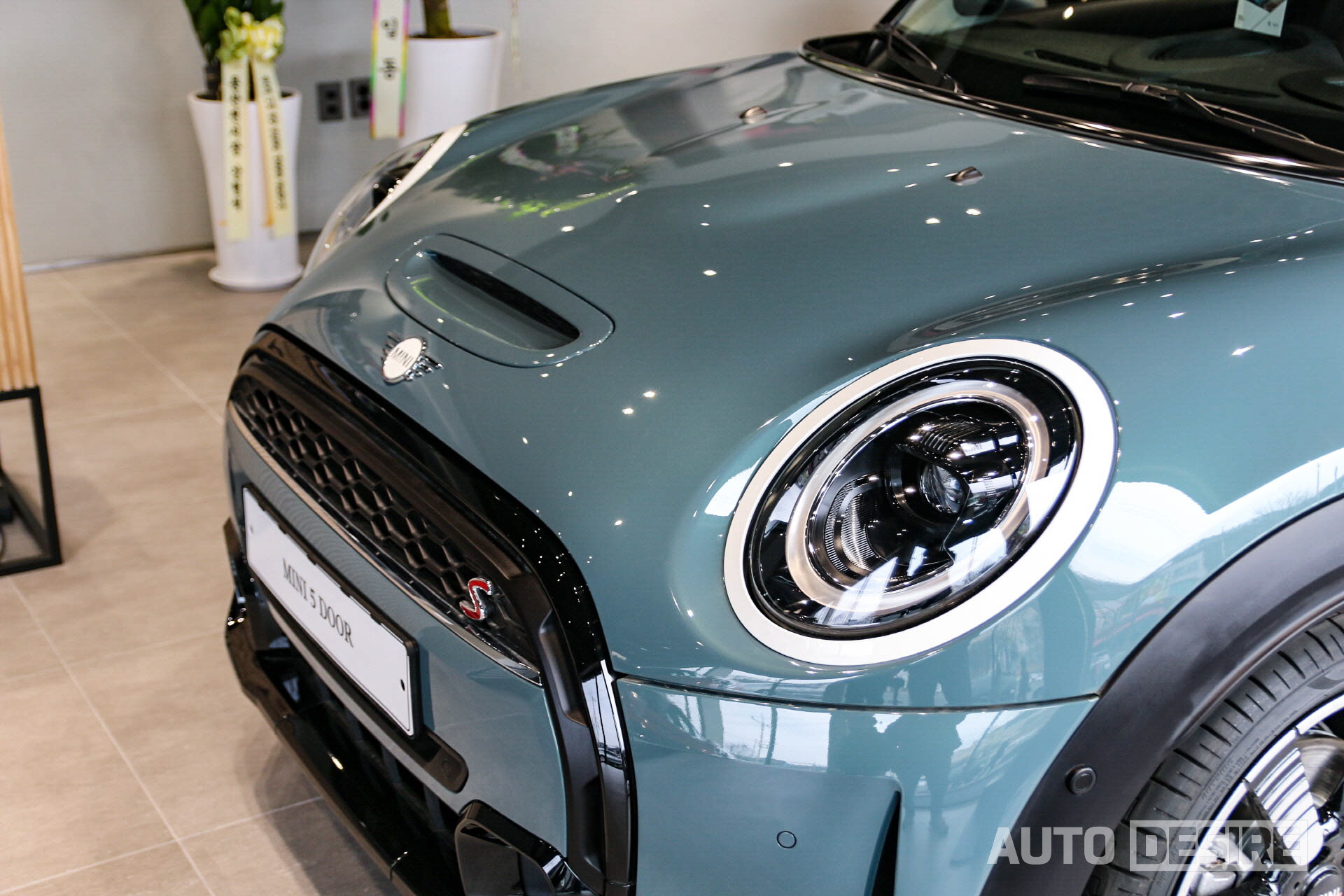 이번 미니 해치백 5도어 쿠퍼 S 멀티톤 에디션의 경우 5도어 모델 최초로 '세이지 그린' 외장 컬러가 적용되었고, 기본 모델이라면 크롬이나 블랙으로 적용되는 헤드라이트 베젤과 미니 엠블럼 배경이 화이트 컬러가 적용되어 신선한 인상을 전한다. 세이지 그린과 대비감도 꽤 잘 사는 편.