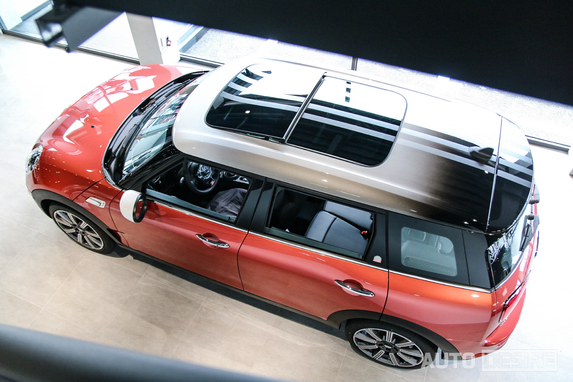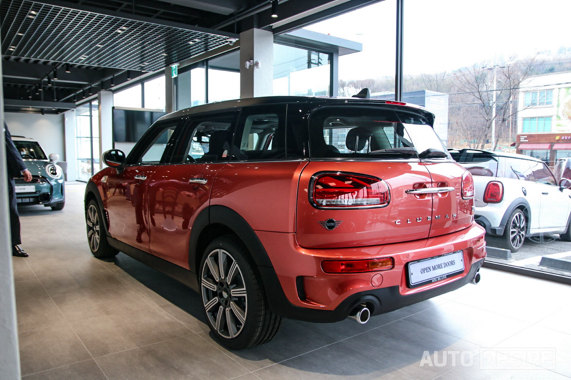 이어서 미니 클럽맨 쿠퍼 S 멀티톤 에디션 차례. 해치백 멀티톤 에디션에 비하면 라이트 베젤과 도어 손잡이가 크롬 그대로라 상대적으로 소극적인 느낌이지만, 사이드 미러 커버는 확실하게 화이트로 덮고, 펜더와 2열 도어 프레임에도 멀티톤 에디션 로고를 달아놨으며,