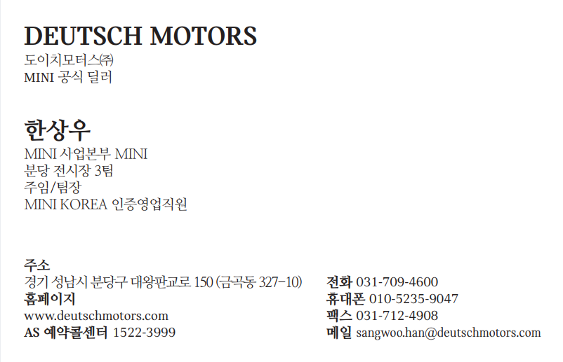 MINI 도이치모터스 분당전시장 한상우 팀장.