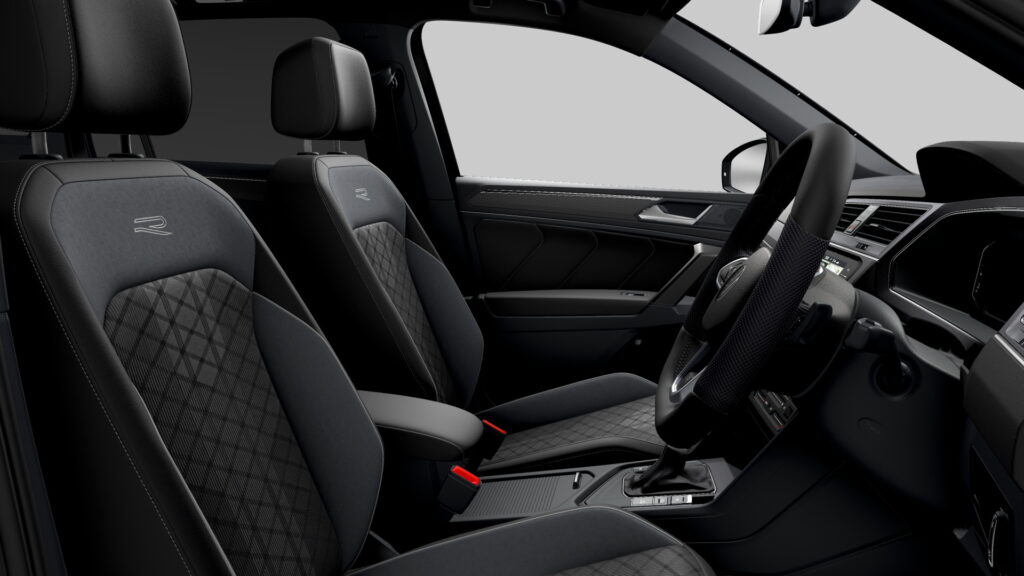 다크 테마는 실내에도 이어져서 카본 그레이 인서트가 대시보드와 도어 트림에 적용되고, 헤드라이너 역시 블랙 헤드라이너로 적용했다. 그 외 인테리어 모든 부분 역시 올 블랙 컬러로 시트에는 R 엠블럼도 더해졌다. 기본 사양으로는 열선이 포함된 스포츠 컴포트 시트와 스포츠 스티어링 휠, 디지털 클러스터와 9.2인치 내비게이션/인포테인먼트 시스템이 포함된다.
