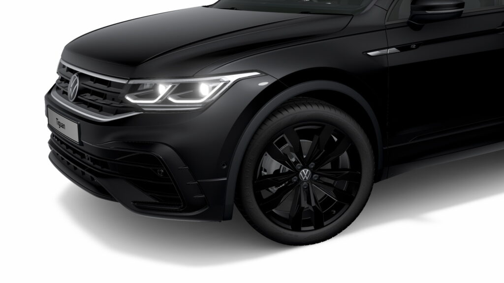 티구안 블랙 에디션은 R 라인의 바디킷을 기반으로 범퍼 에어벤트를 감싸고 있는 트림과 사이드 미러 커버, 윈도우 라인 가니시, 루프 레일, 배기 팁까지 모두 유광 블랙 컬러로 마감했으며 휠 역시 20인치 스즈카 블랙 알로이 휠을 장착했다. 프런트 그릴도 바깥쪽 상하단 크롬 라인을 제외하고 그릴 내부는 유광 블랙 라인을 적용했다.