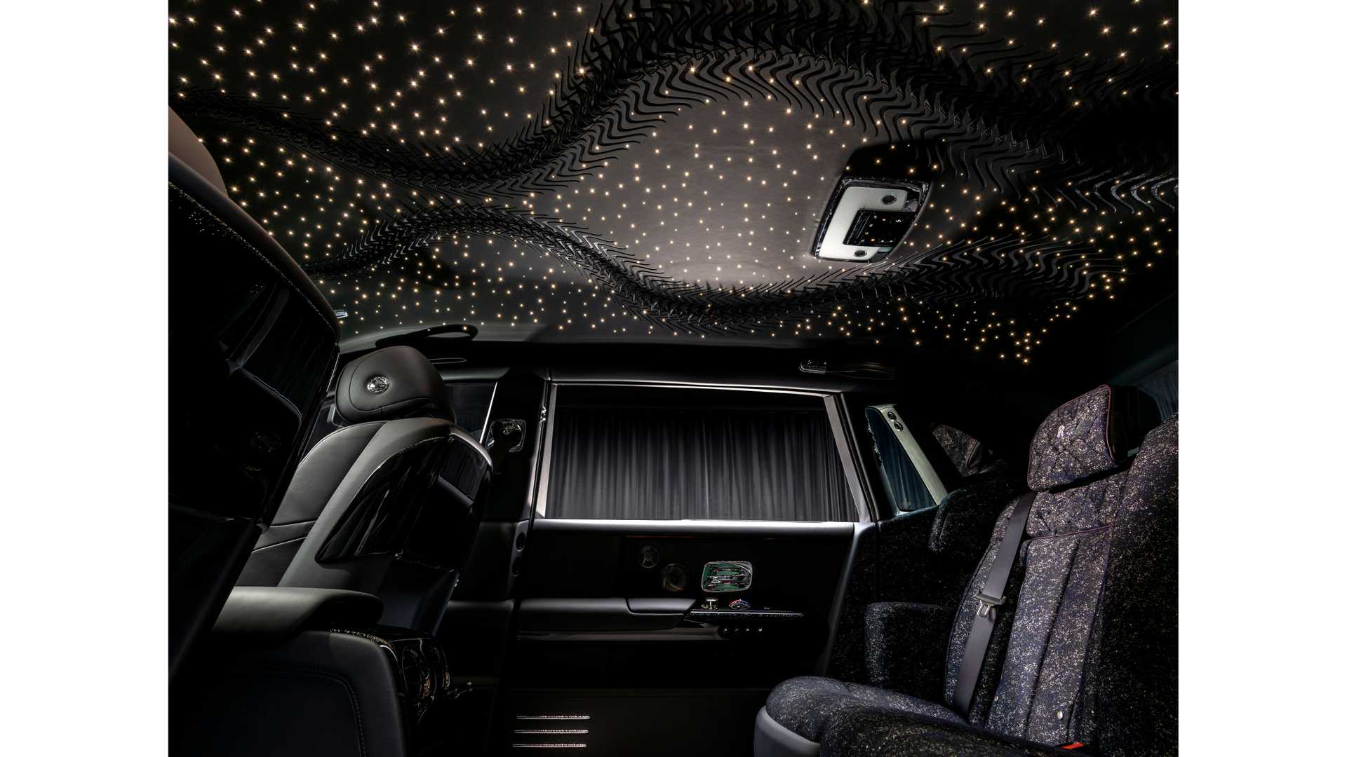 실내에서도 롤스로이스 비스포크 컬렉티브와 아이리스 반 헤르펜이 함께 제작한 요소들을 더해, 코치 도어를 열면 가장 먼저 위빙 워터 스타라이트 헤드라이너가 반겨주며 이는 1,000장이 넘는 가죽 중에서 엄선된 무결점 가죽 1장 만을 사용하고, 정밀한 대칭 컷에 나일론 직물로 만든 은색 리퀴드 메탈 질감을 더해 입체적인 느낌을 살렸다.