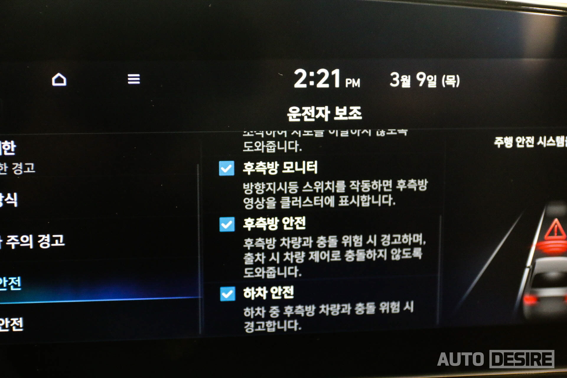 이와 함께 서라운드 뷰 모니터와 후측방 모니터도 추가!(인스퍼레이션 트림 기본, 모던 트림은 파킹 어시스트 플러스 선택 시 적용) 좁은 길 주행 및 주차 중 차량 전후좌우에 위치한 장애물 확인도 가능해졌고, 주행 중 후측방 사각지대에 접근하는 차량도 모니터를 통해 확실하게 확인할 수 있게 되었다. (다만 서라운드 뷰는 왜곡이 좀 있는 편이다.)