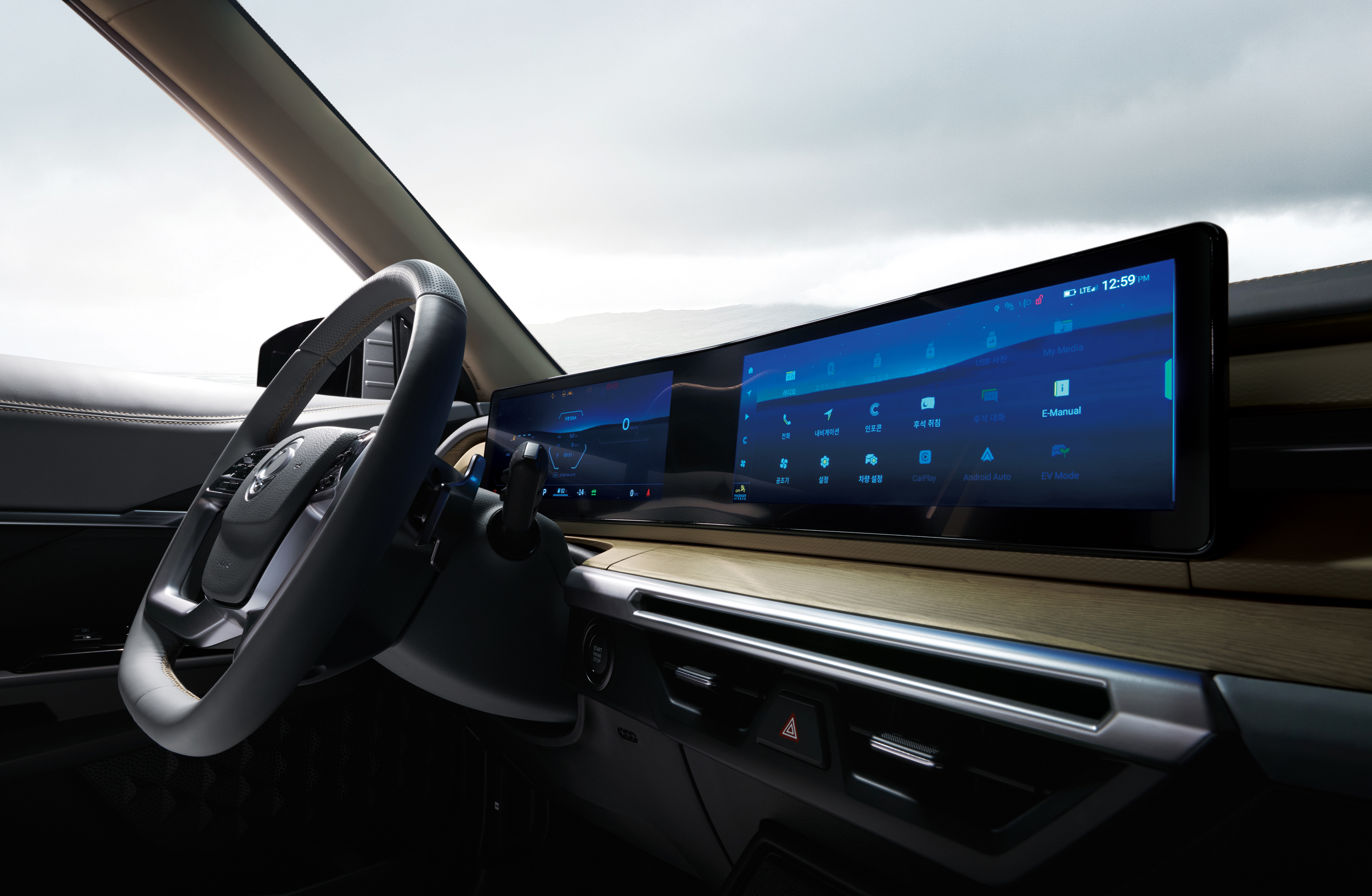 실내는 1열 운전석 중심으로만 먼저 공개되었는데, 디지털 클러스터와 내비게이션이 하나로 일체화되어 있는 파노라마 디스플레이가 적용된 것을 볼 수 있으며, 센터패시아의 조작부는 물리 버튼을 최소화한 것으로 보인다. 아직 정확한 모습은 알 수 없지만 전자식 변속기 적용과 함께 센터 콘솔에서도 내연기관 버전 토레스와 꽤 많은 차이를 줄 것으로 보이며, 이를 통해 차후 토레스의 상품성 개선이나 페이스리프트 모델이 어떻게 달라질 지도 유추해 볼 수 있을 것 같다.