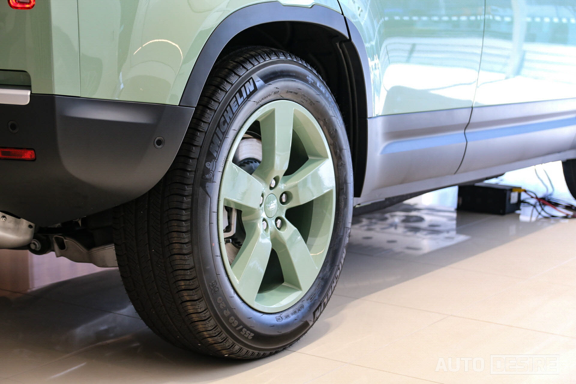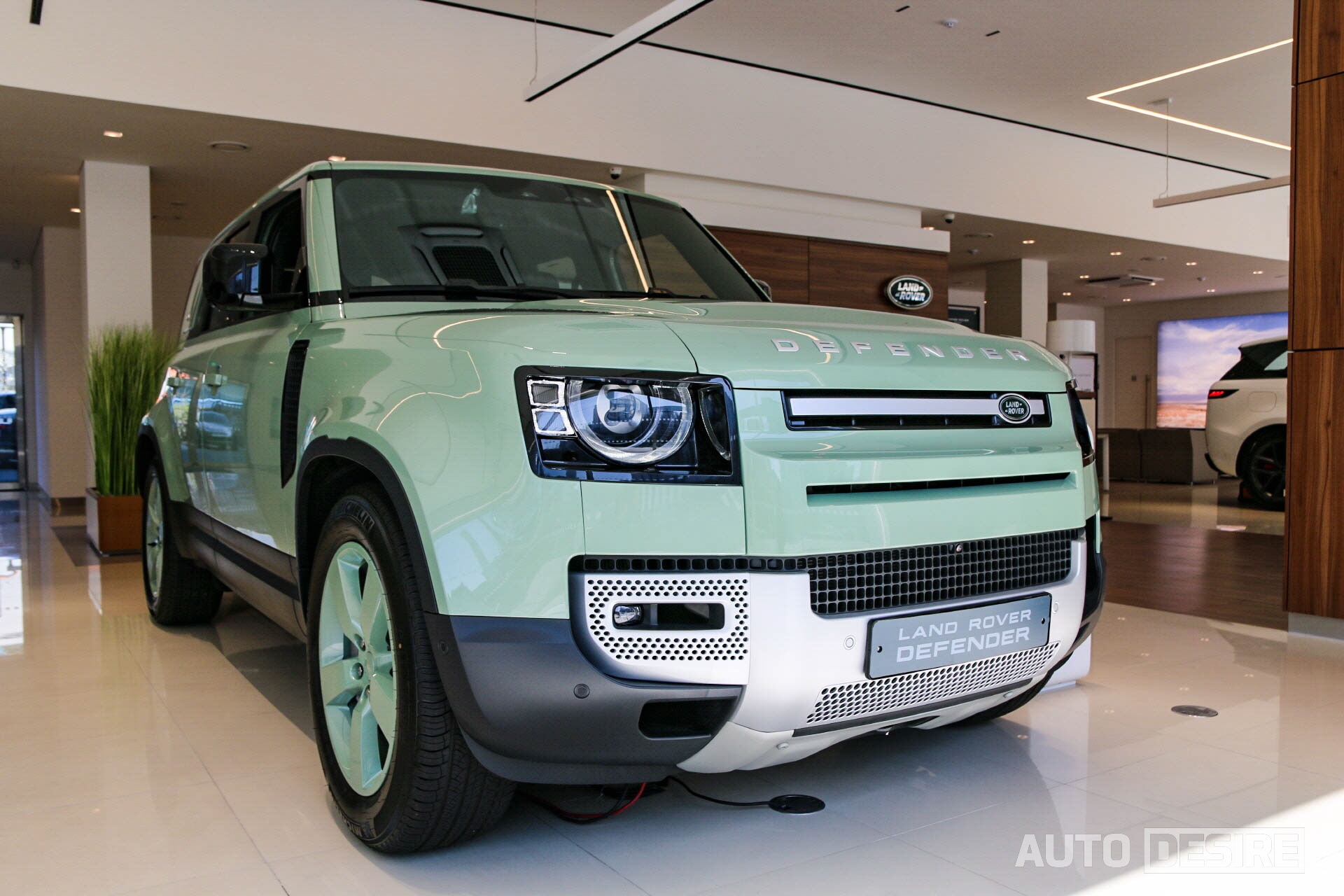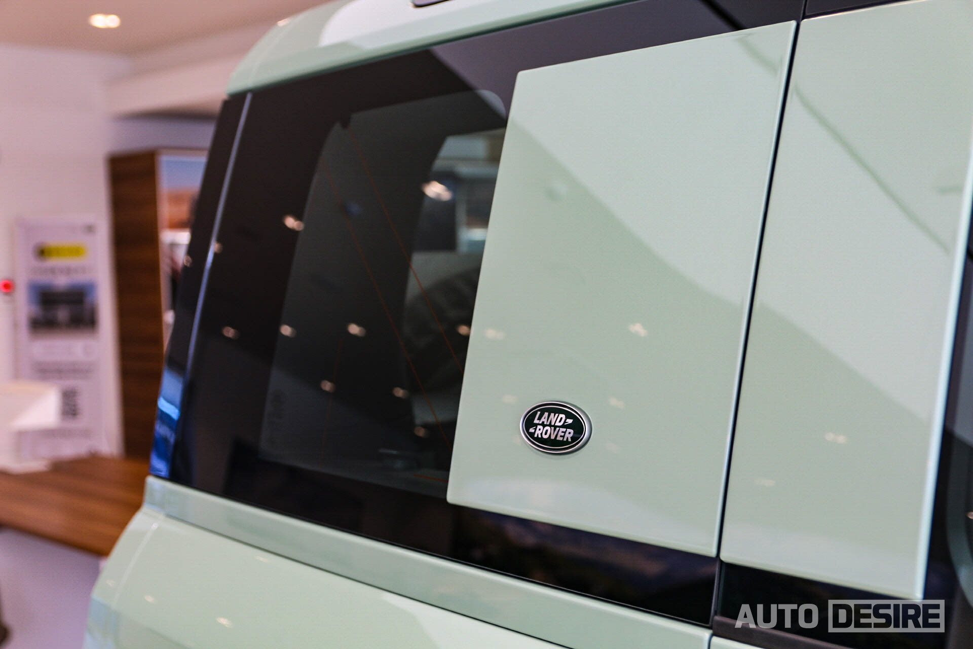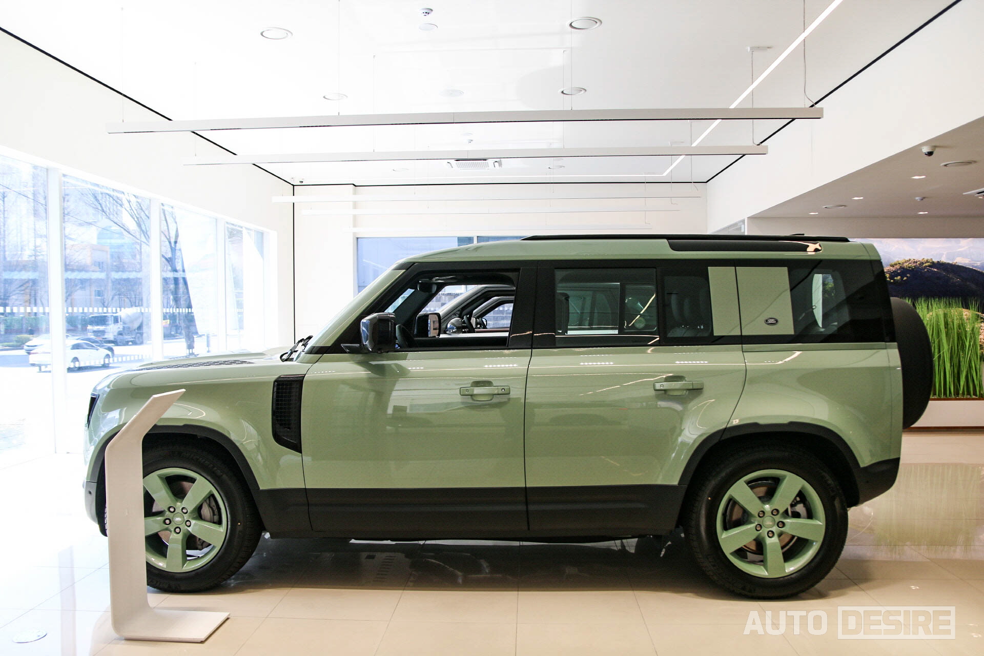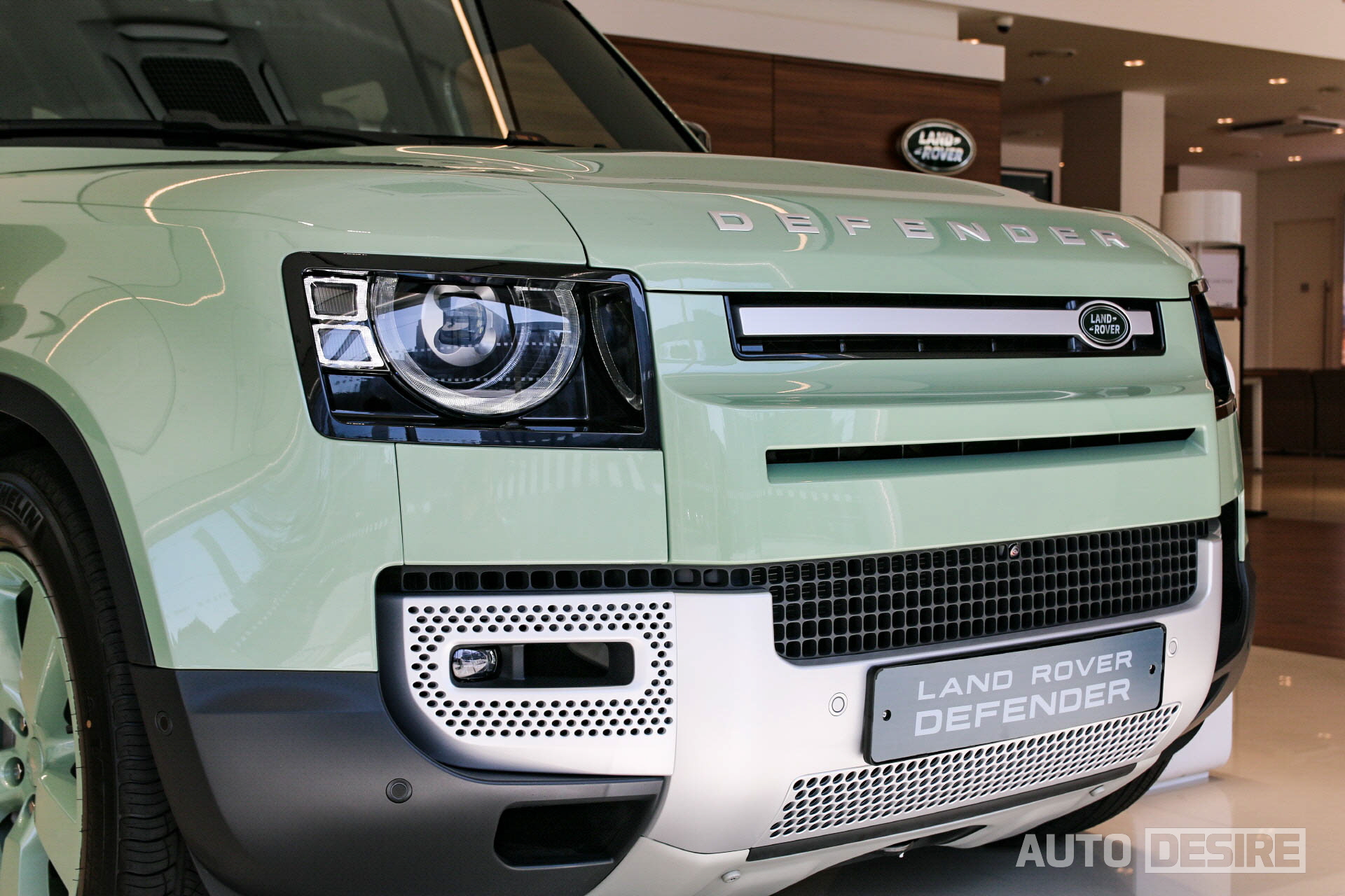 파스텔 톤의 그린 색상이라, 기본 디펜더 모델의 색상인 '판게아 그린'과 비교하면 더 산뜻하고 화사한 느낌을 주며, 맑은 날씨에 캠핑이나 아웃도어 활동을 떠나기에 잘 어울리는 분위기를 전달한다. 특히나 다른 랜드로버 모델들보다도 '디펜더'이기에 특별 색상과의 조화가 더 사는 느낌이다. 헤드라이트는 매트릭스 LED 헤드램프가 적용된다.
