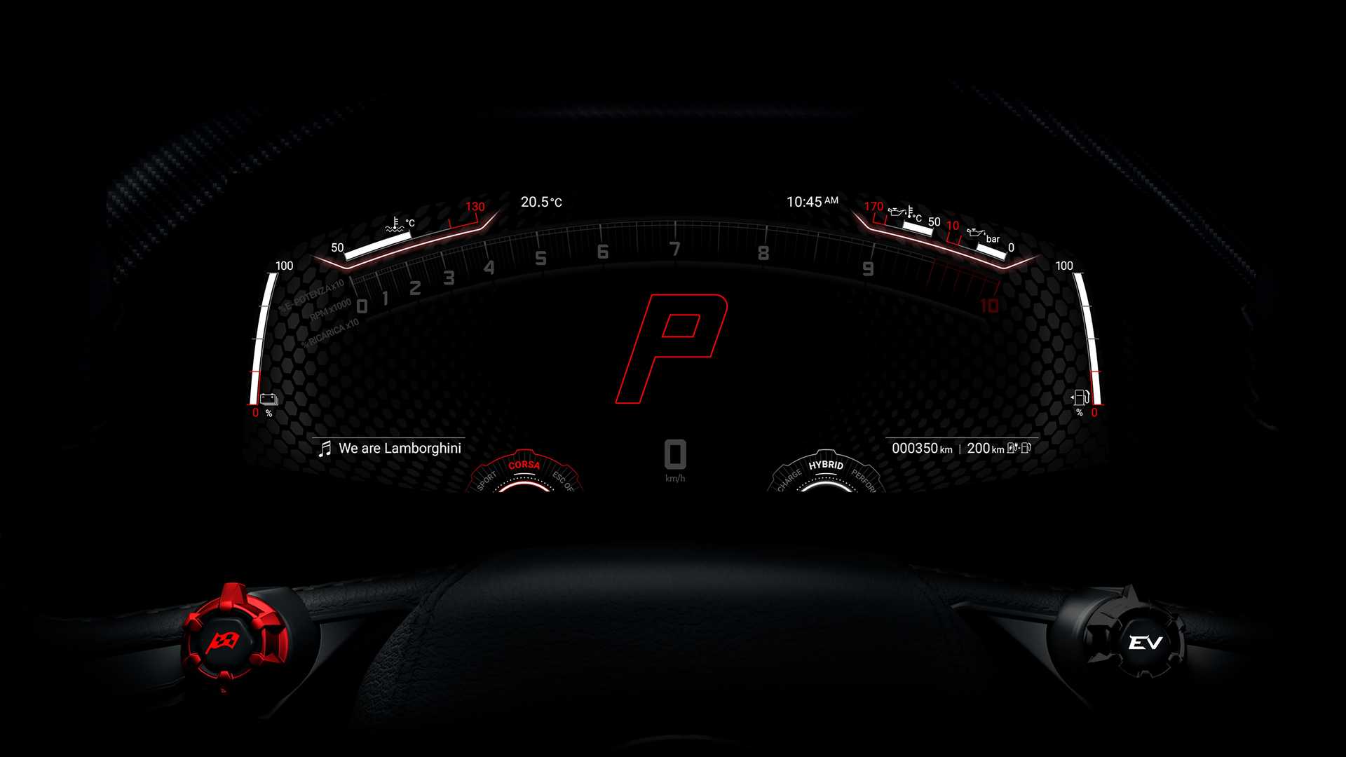새로운 스티어링 휠의 일부 모습과 디지털 클러스터의 그래픽이 공개된 LB744, 아벤타도르 후속 모델은 AWD EV 모드를 포함한 총 13가지 주행 모드를 제공한다. AWD EV 모드에서는 최대 180마력을 발휘할 수 있으며, 코르사 모드를 선택하게 되면 V12기통 6.5리터 자연흡기 엔진과 3개의 전기 모터를 함께 구동시켜 최대 1,015마력까지 출력을 발휘하게 된다고 한다.