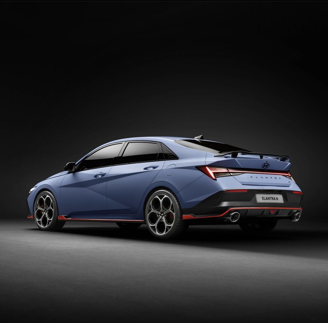 후면에서도 더 뉴 아반떼가 블랙 투톤 범퍼를 적용한 것처럼, 블랙 범퍼의 면적이 더 확대 적용되었으며, 보트 테일링 디테일을 추가해 공력 개선 효과를 더했다고 한다. 이 외에 N 모델 중 처음으로 블랙 아노다이징 엠블럼을 적용했다. 이 외의 블랙 리어 스포일러와 듀얼 머플러 팁 등 기본 아반떼 N이 가지고 있던 요소들은 그대로 이어나간다.