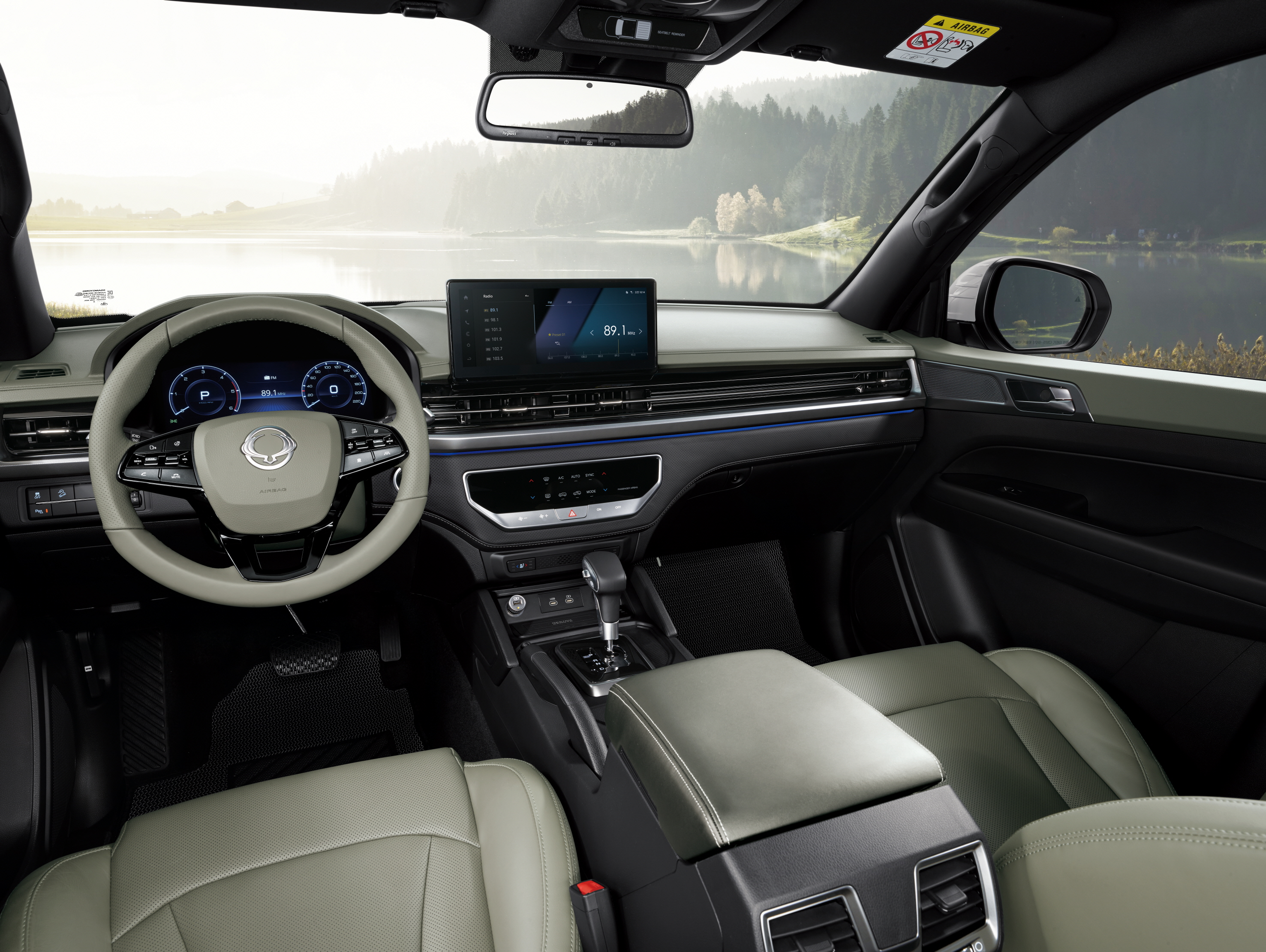 렉스턴 스포츠&칸 쿨멘의 가장 중점적인 변화는 실내에서 이뤄졌다. 수평적인 레이아웃을 바탕으로 좌우로 넓게 뻗은 송풍구와 함께, 센터패시아 상단에는 12.3인치 인포콘 내비게이션 터치 디스플레이를 장착하고 하단에는 물리버튼을 최소화한 터치식 공조 컨트롤러를 적용해 간결하고 깔끔한 실내를 구현했다. 운전석에도 12.3인치 풀 디지털 클러스터를 적용해 주행 및 차량 관련 다양한 정보를 운전자에게 제공한다.
