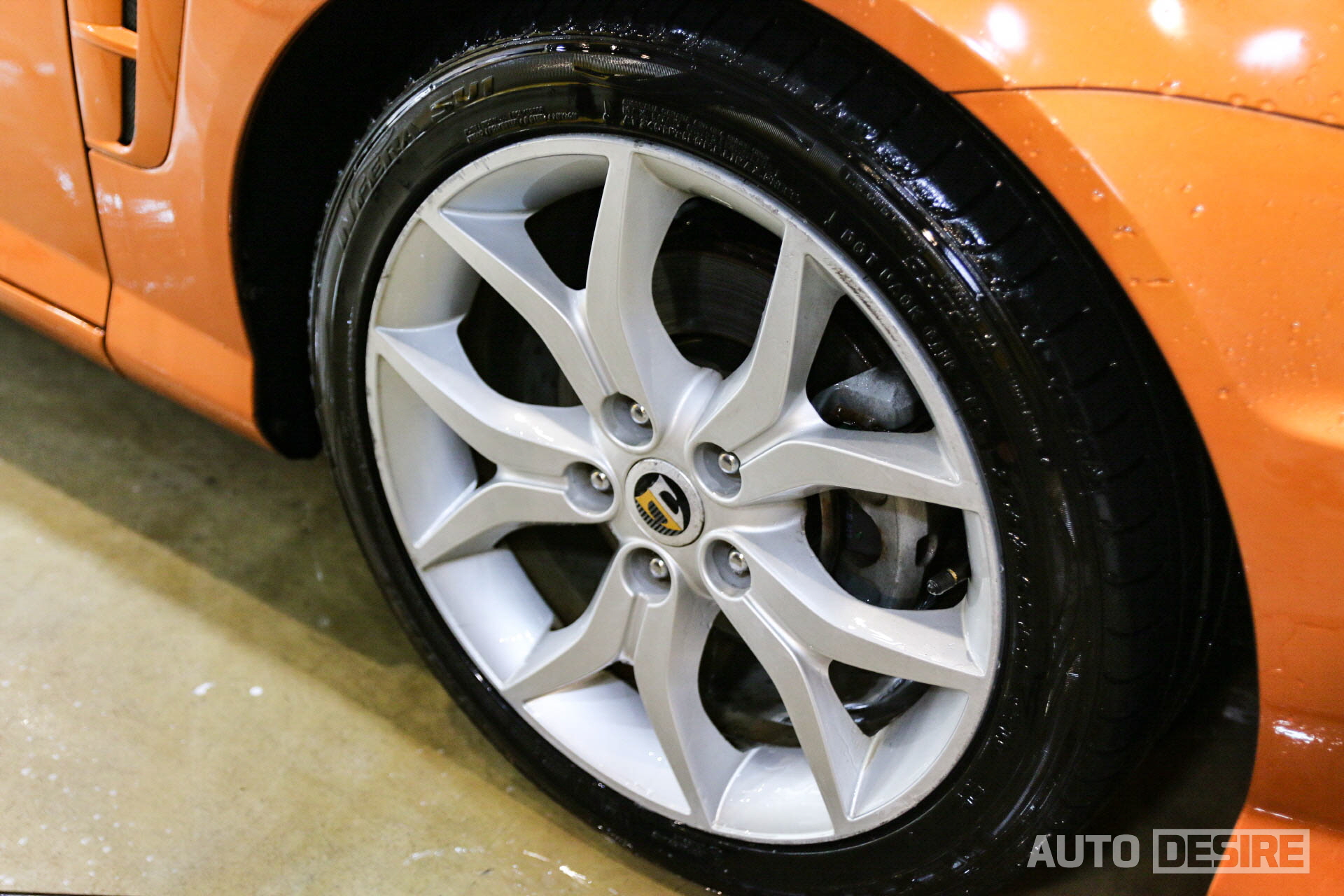 유막 제거가 끝났으면 이제 차량 전체를 세차해 줄 차례. 어느 곳 하나 빠짐없이 더러운 투스카니 전체에 고압수로 굵은 흙먼지들 먼저 싹 털어내주고, 휠과 타이어까지 브러쉬로 틈 사이사이마다 꼼꼼하게 세척해 주신다. 덕분에 휠이 아주 뽀얘졌다.