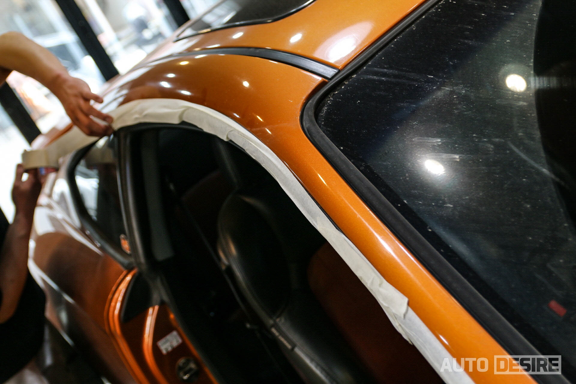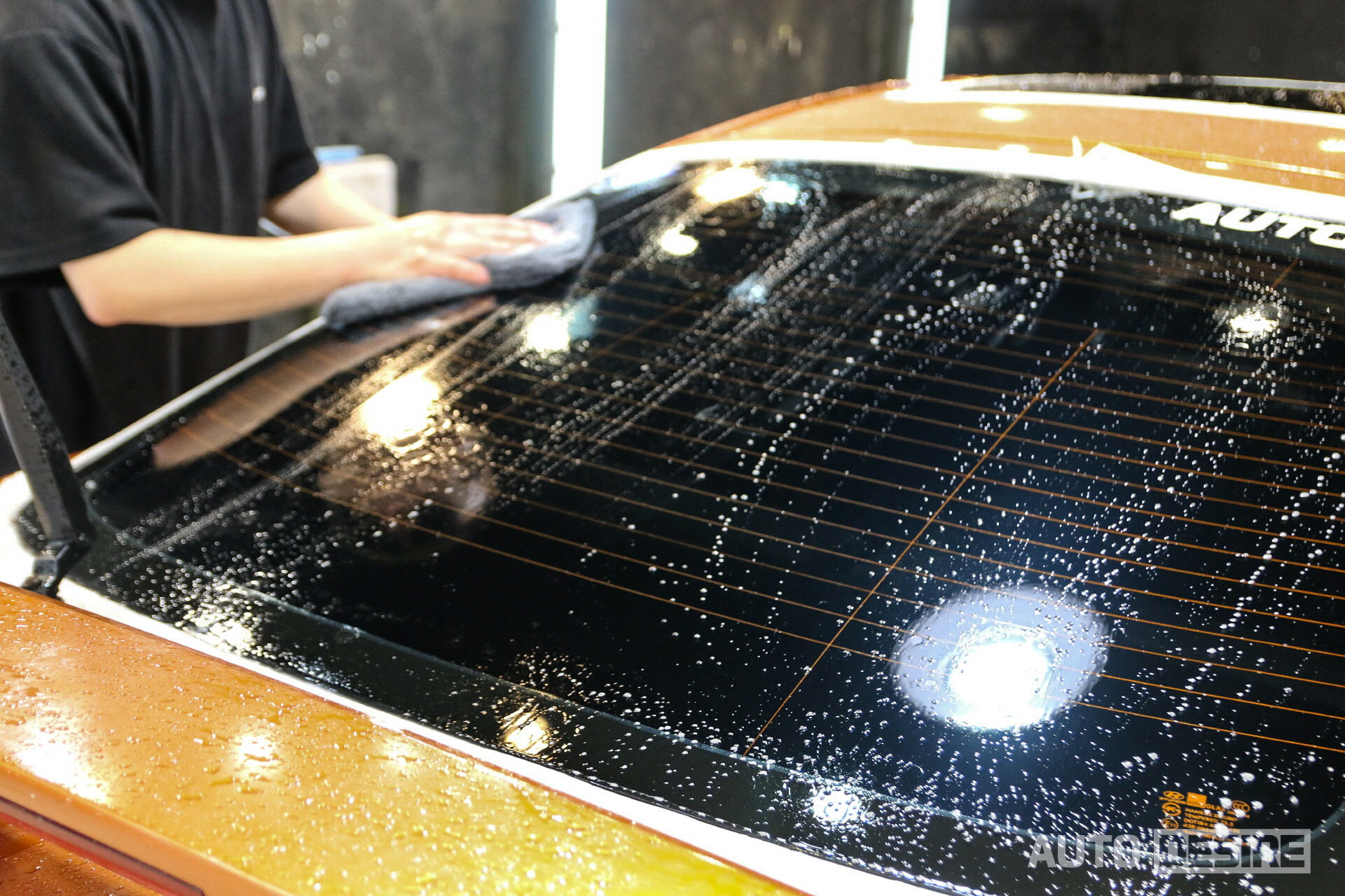 세차와 함께 이번 작업의 메인은 쏟아지는 장대비에도 또르르~ 자연스럽게 흘러가는 물방울, 비딩감으로 비 오는 날 시야도 선명하게 확보할 수 있는 '유리막 발수코팅' 시공. 더러워진 유리의 유막 제거를 하면서 혹시나 유리 테두리 몰딩과 웨더스트립, 차체 표면이 손상되지 않도록, 시공 전 마스킹 작업부터 꼼꼼하게 챙겨주신다. 귀찮으실 수도 있지만, 이런 세심한 작업 하나하나까지 신경 써주시기 때문에 고객들이 더 믿고 소중한 차를 맡길 수 있는 것 같다.