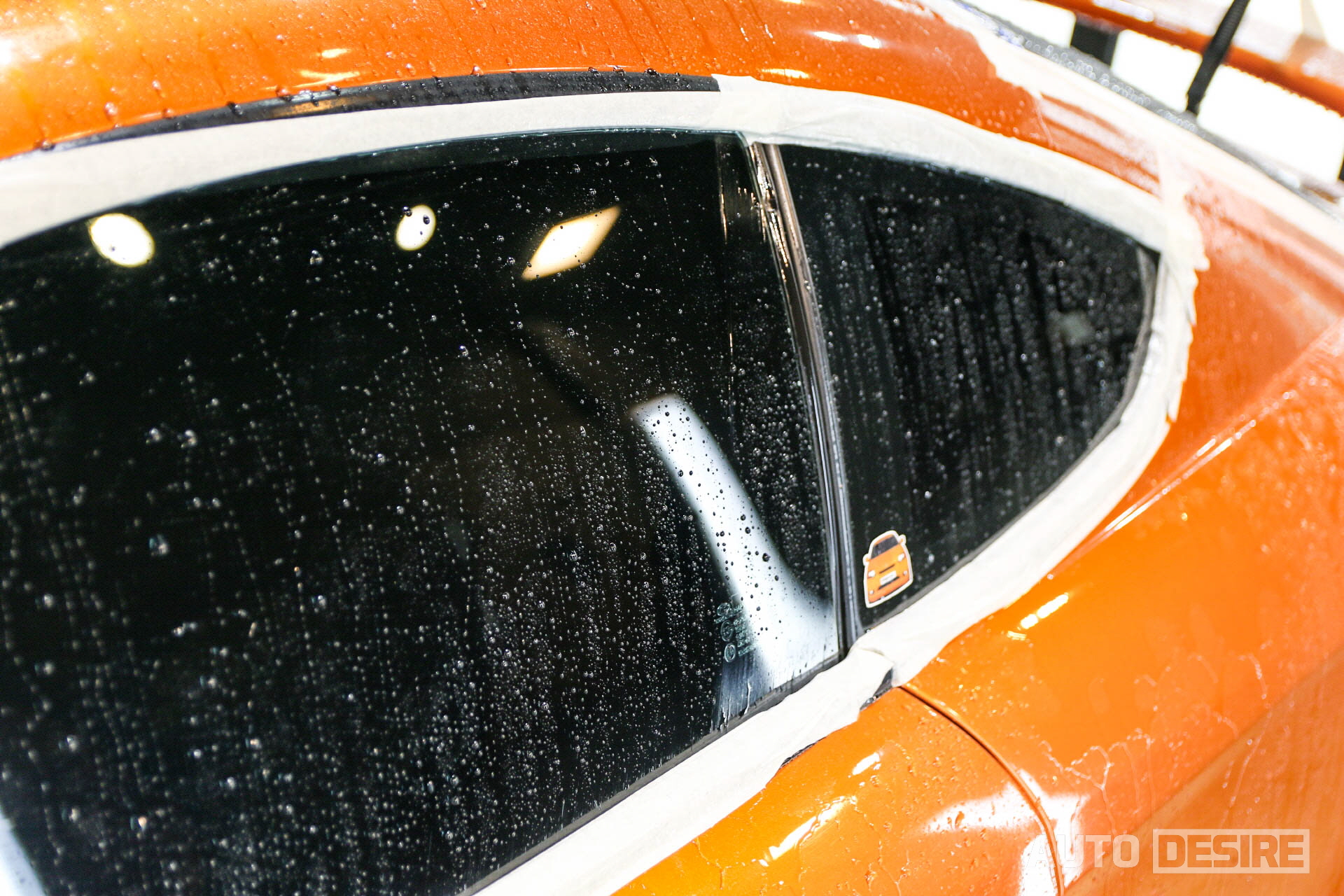 마스킹을 끝낸 다음에는 흙먼지 잔뜩 눌어붙은 유리를 세척해 줄 차례. 고압수로 먼저 한번 세척해 준 뒤, 부드럽게 미트질로 찌든 때까지 깔끔하게 잘 닦아내 준 뒤 다시 고압수로 싹 씻어내주면!?