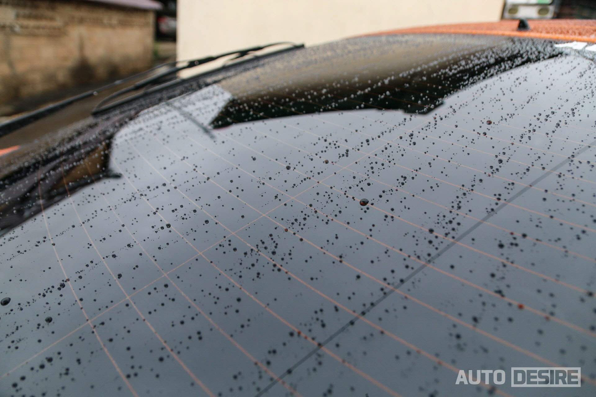 그나마 와이퍼 브러쉬의 영향을 받지 않는 측면 유리는 아직까지 발수력이 조금이나마 살아있는 모습이지만,