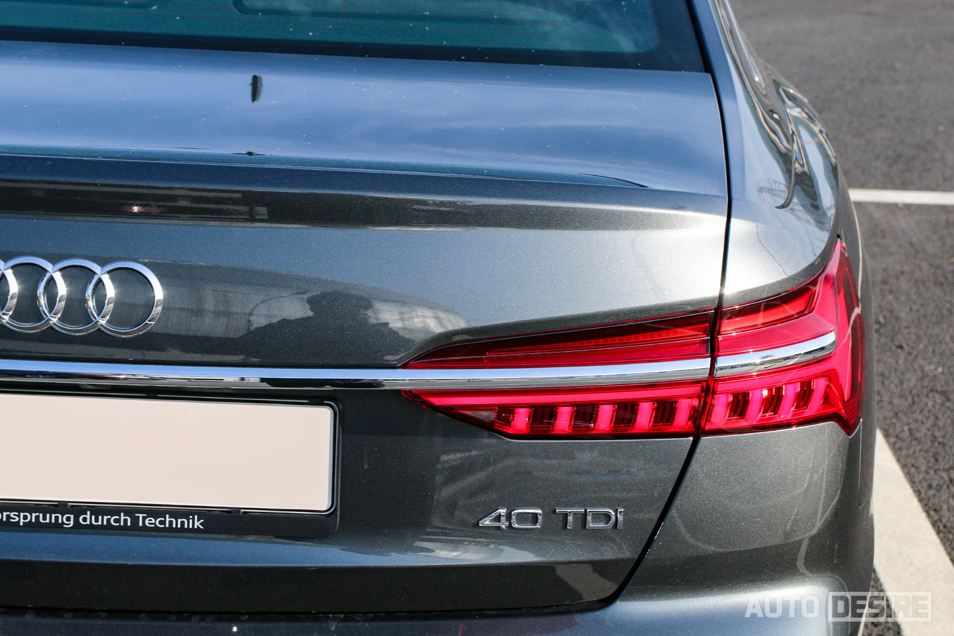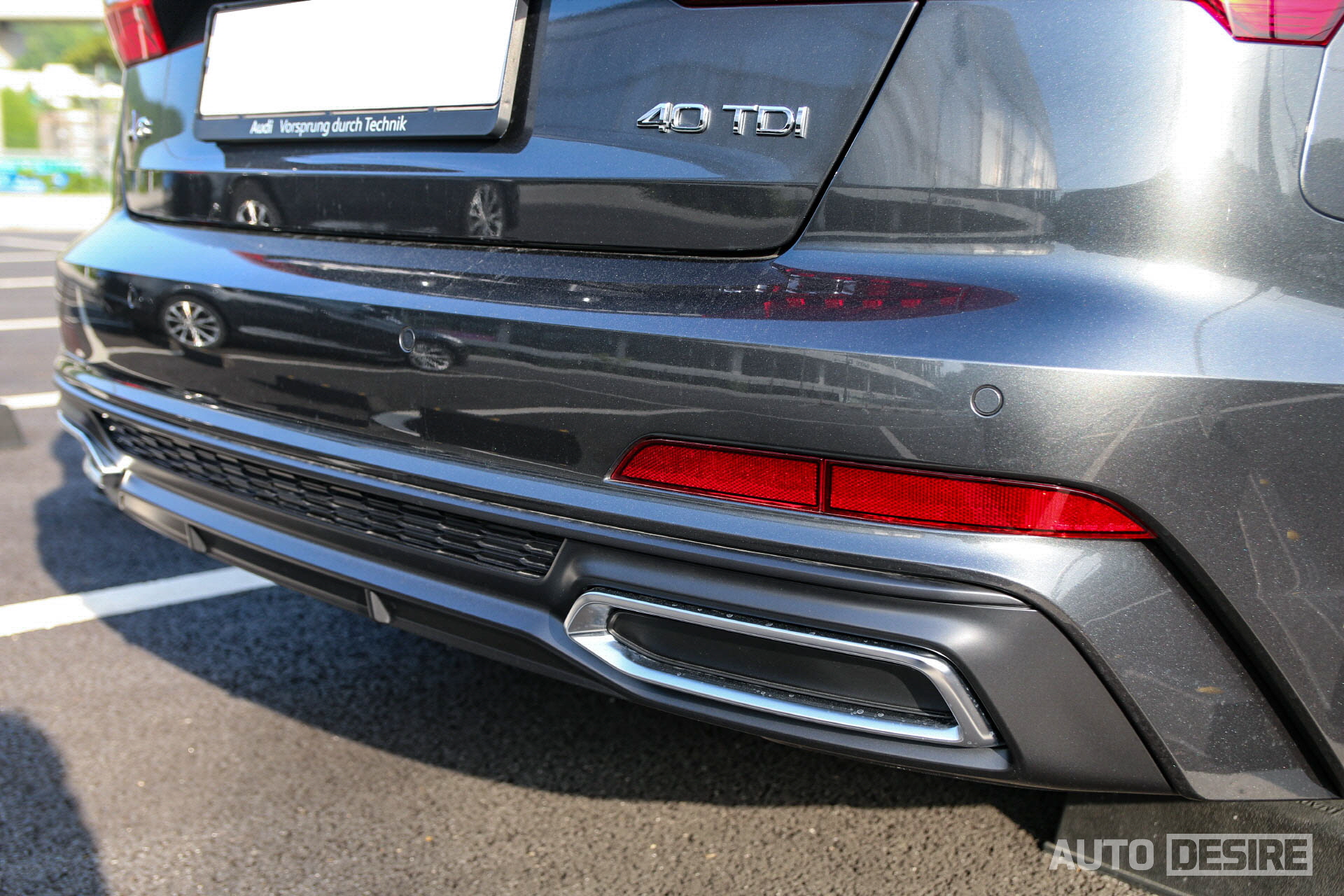 후면 디자인 역시 전면부와 통일감있게 아우디 특유의 엣지있고 직선이 주는 샤프한 인상을 잘 살렸으며, 역시나 아우디 답게 다이내믹 턴 시그널이 적용된 LED 테일램프로 화려한 디테일을 더했다. 이 외에도 리어 램프 좌우를 잇는 트렁크 리드의 크롬 가니시로 와이드하고 안정적인 느낌을 주며, 범퍼 하단에 머플러팁 형태의 크롬 데코로 밋밋하지 않게 포인트를 더했다.