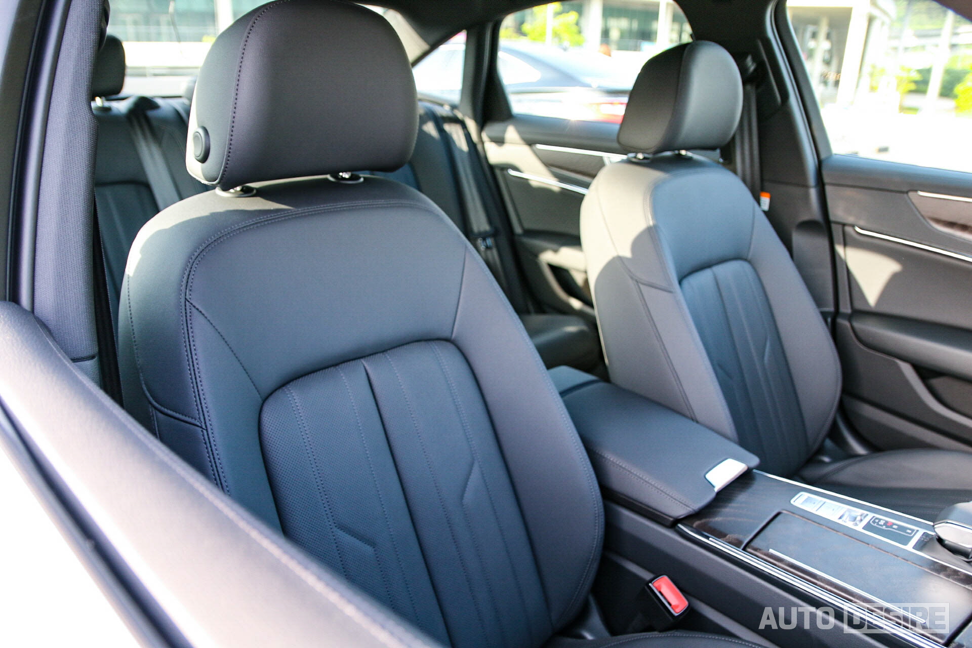 인테리어도 익스테리어의 엣지있고 직선적인 디자인 특성을 통일감 있게 구현하고, 수평적 배치로 와이드한 느낌을 전달한다. 특히 센터 디스플레이를 감싸면서 조수석까지 이어지는 패널의 디자인은 육각형 싱글 프레임 그릴을 형상화한 것으로 보인다. 4-스포크 타입 스티어링 휠 역시 수평형으로 안정적인 느낌을 주고, 우드 인레이와 가죽으로 마감한 도어 트림과 크래시패드 상단 부분 등 A6의 차급에 맞게 깔끔한 스타일로 고급감을 높인 모습이다.