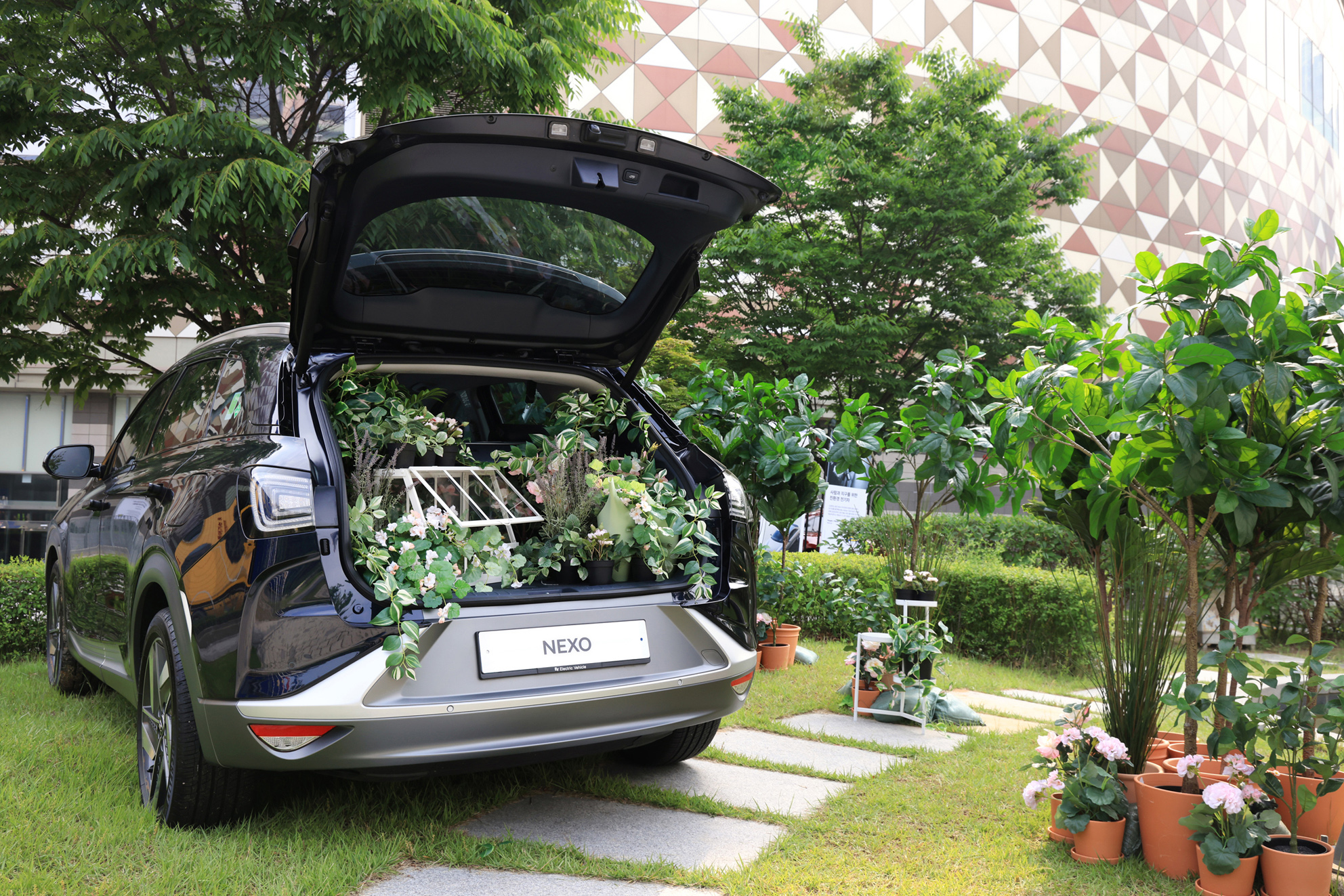 오염물질 배출 없이 초미세먼지를 걸러낼 수 있는 수소전기차 '넥쏘'의 장점을 반영한 푸른 정원, 가든 콘셉트로 구성한 '넥쏘 존'에서는 이케아의 가드닝, 파밍 관련 제품을 만나볼 수 있다.