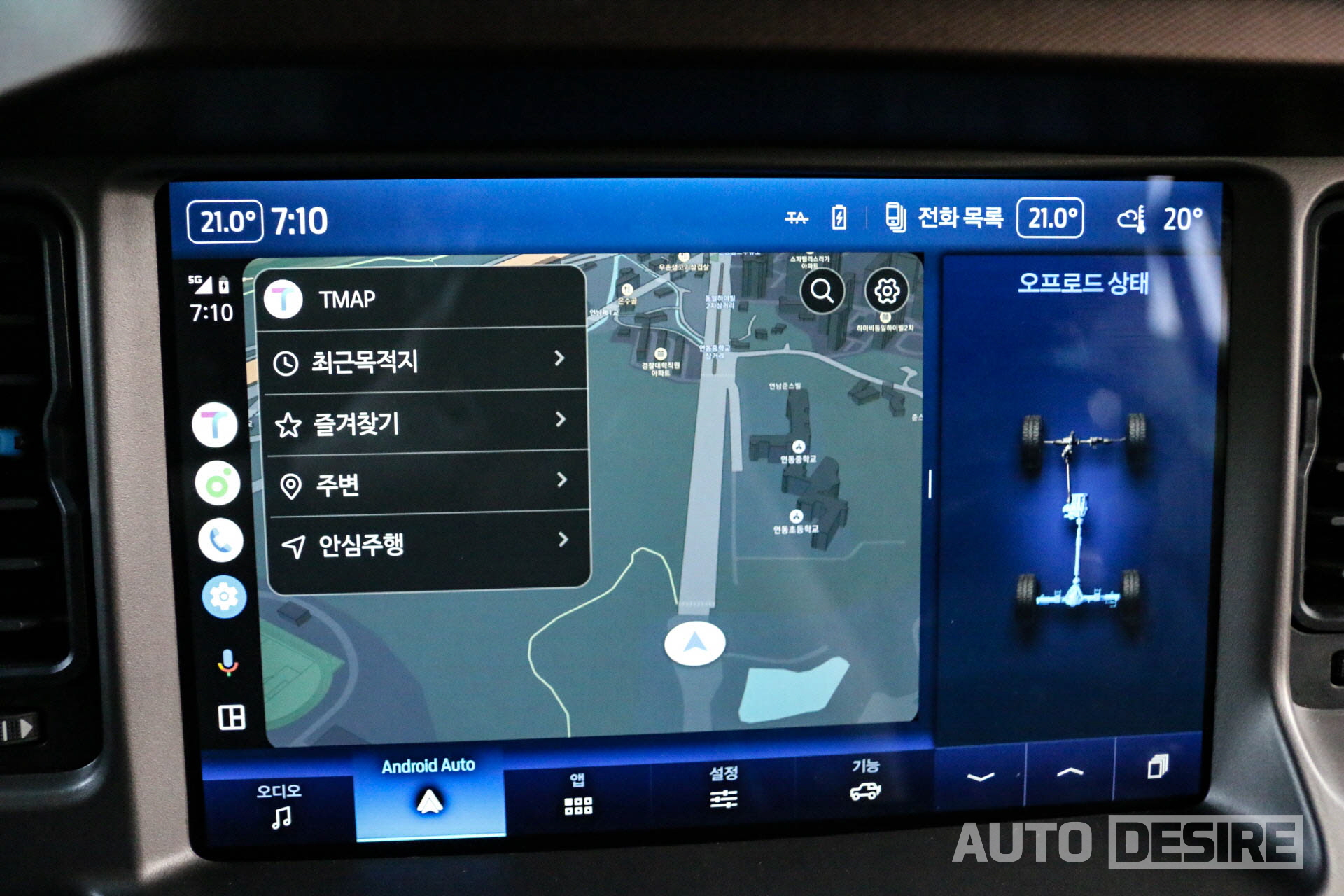 탈착식 하드탑을 장착하고 있어서 외부 소음에 취약한 면도 있고, 공기저항을 많이 받는 차체 형상 특성상 윈드 노이즈에도 불리해서 도심형 차량들과 비교하면 분명 외부 소음 유입은 꽤 있는 편이지만 음질 아주 좋은 뱅앤올룹슨 사운드 시스템을 적용한 덕에, 음악을 들으면서 드라이빙을 하면 그런 불편함도 충분히 상쇄시켜줬다. 브롱코의 특성을 알고 경험하는 분들이라면 되려 만족감이 더 높아질 거라 생각한다.