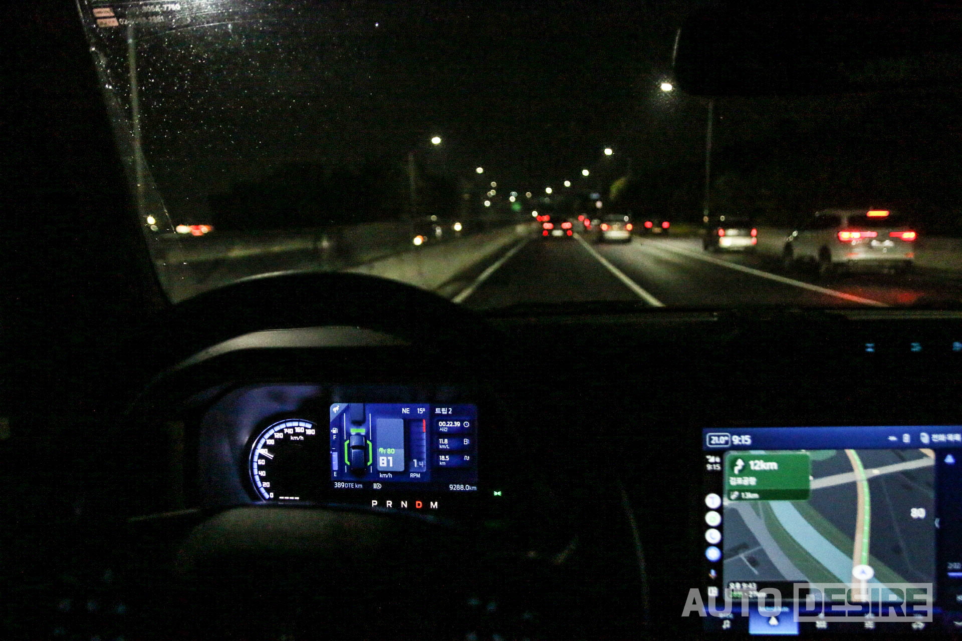 승차감과 소음/진동에 있어서도 오프로드 SUV이기에 어느 정도 불편함은 감수하게 타야겠다고 생각했는데, 일단 엔진이 6기통 엔진이라 회전 질감도 부드럽고, 음색도 스포티한 편에 항속 주행 시에는 그리 크게 전달되지 않아 엔진 소음에서는 일단 거슬리는 부분이 없었다. 승차감에서도 좀 쿵쿵거리는 충격이 있거나 심하게 출렁거리지 않을까 예상했지만 방지턱이나 요철 구간, 도로 이음매 구간을 넘어갈 때 충격도 부담스럽지 않게 제법 깔끔하게 걸러내줬고, 출렁거림이 심하지 않은 적당히 탄탄한 쇼버의 느낌으로 승차감에서 불쾌하다는 느낌도 딱히 없었다. (물론 오프로드 SUV라는 기준이라는 걸 감안하기 바란다.)