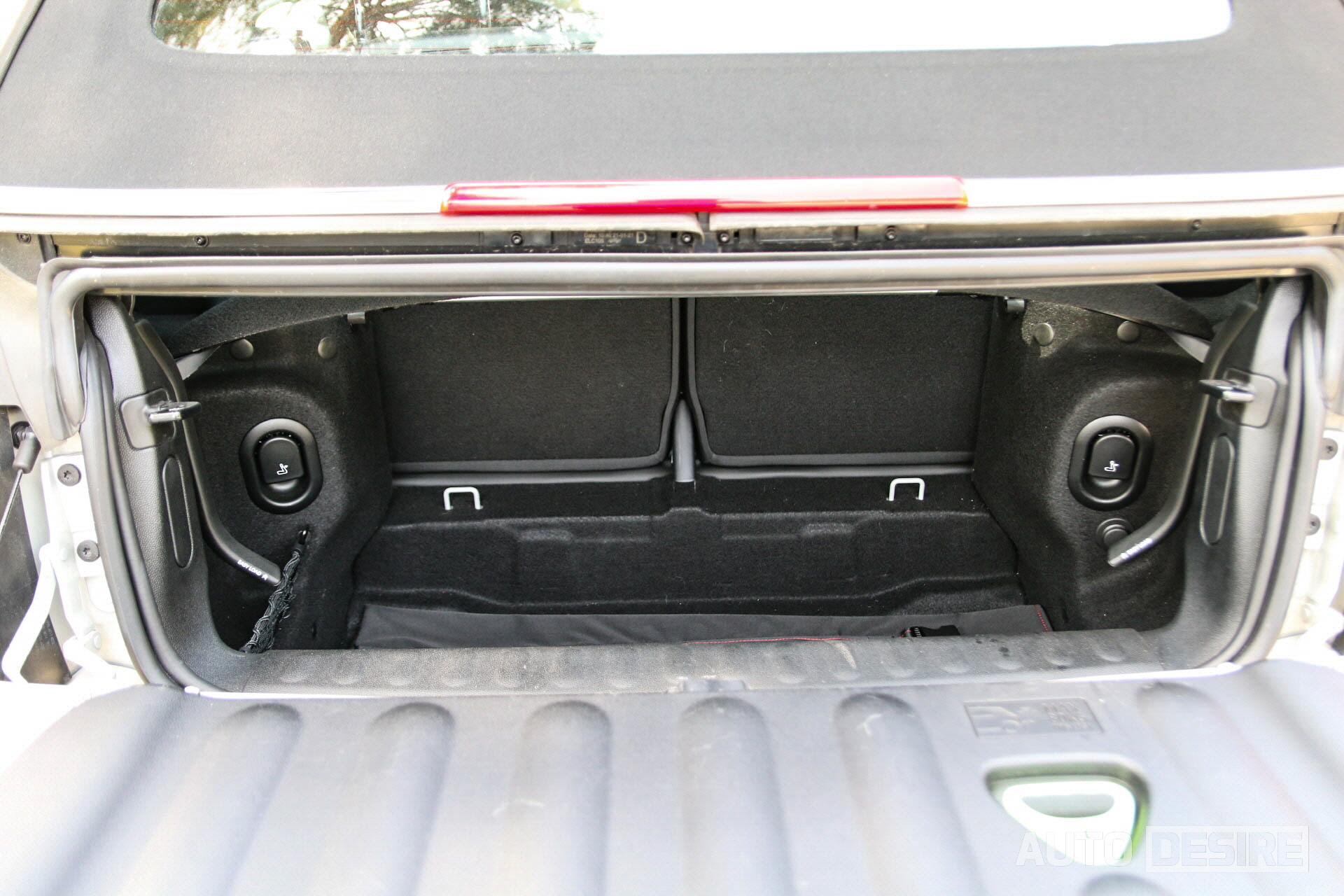 소프트탑을 적용하면서 2열 공간 등받이도 더 수직으로 서 있고, 해치백 모델에 비해서 좁아질 수밖에 없는 게 사실. 그래도 성인 탑승이 가능한 공간이 확보되기는 하는데, 오픈했을 시에 윈드 디플렉터도 함께 설치하려면 2열 공간은 소지품을 보관하는 공간으로 활용하는 것이 좋을 것 같다. 트렁크 공간도 많이 작아질 수밖에 없었지만 2열 폴딩을 지원하기 때문에 길이가 좀 긴 물품이라도 적재가 가능하고, 테일게이트가 아래쪽으로 열리는 방식이라 잠시 물건을 위에 올려놓을 때 편하게 쓸 수 있기도 하다.