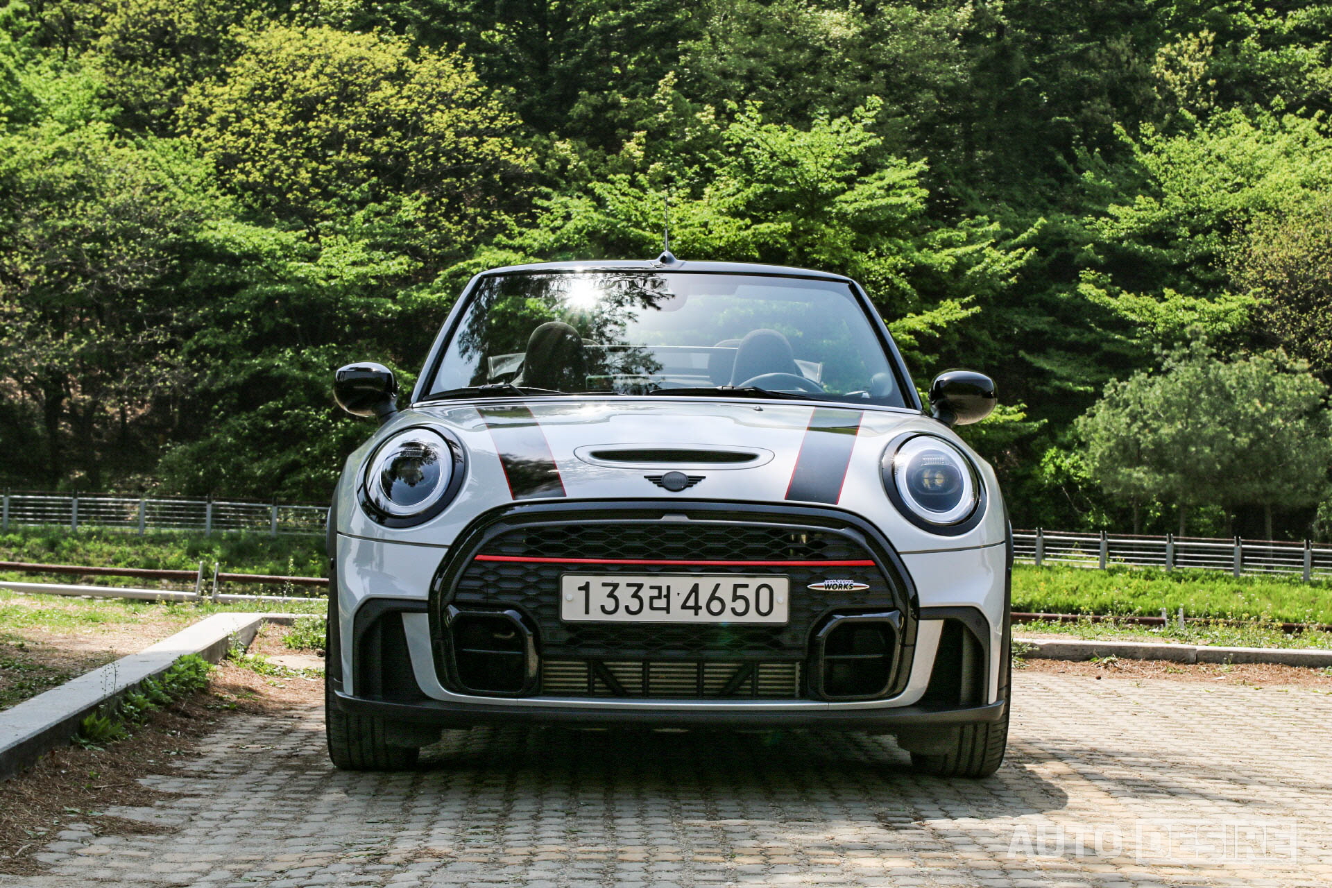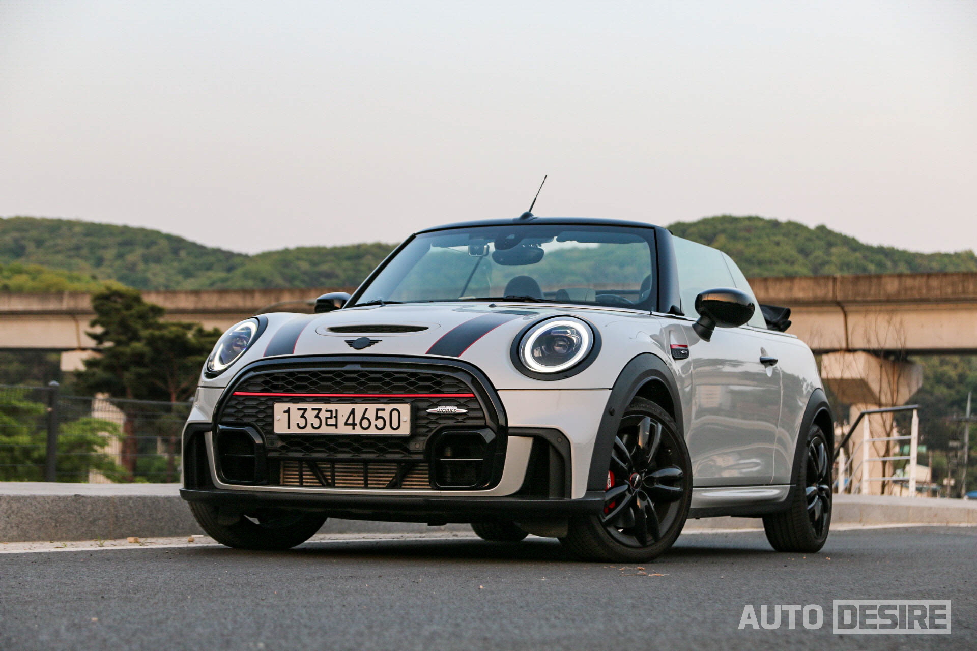 2023 미니 컨버터블 JCW, 외장 색상 : 화이트 실버 & 블랙 스트라이프, 내장 색상 : 피아노 블랙 인테리어